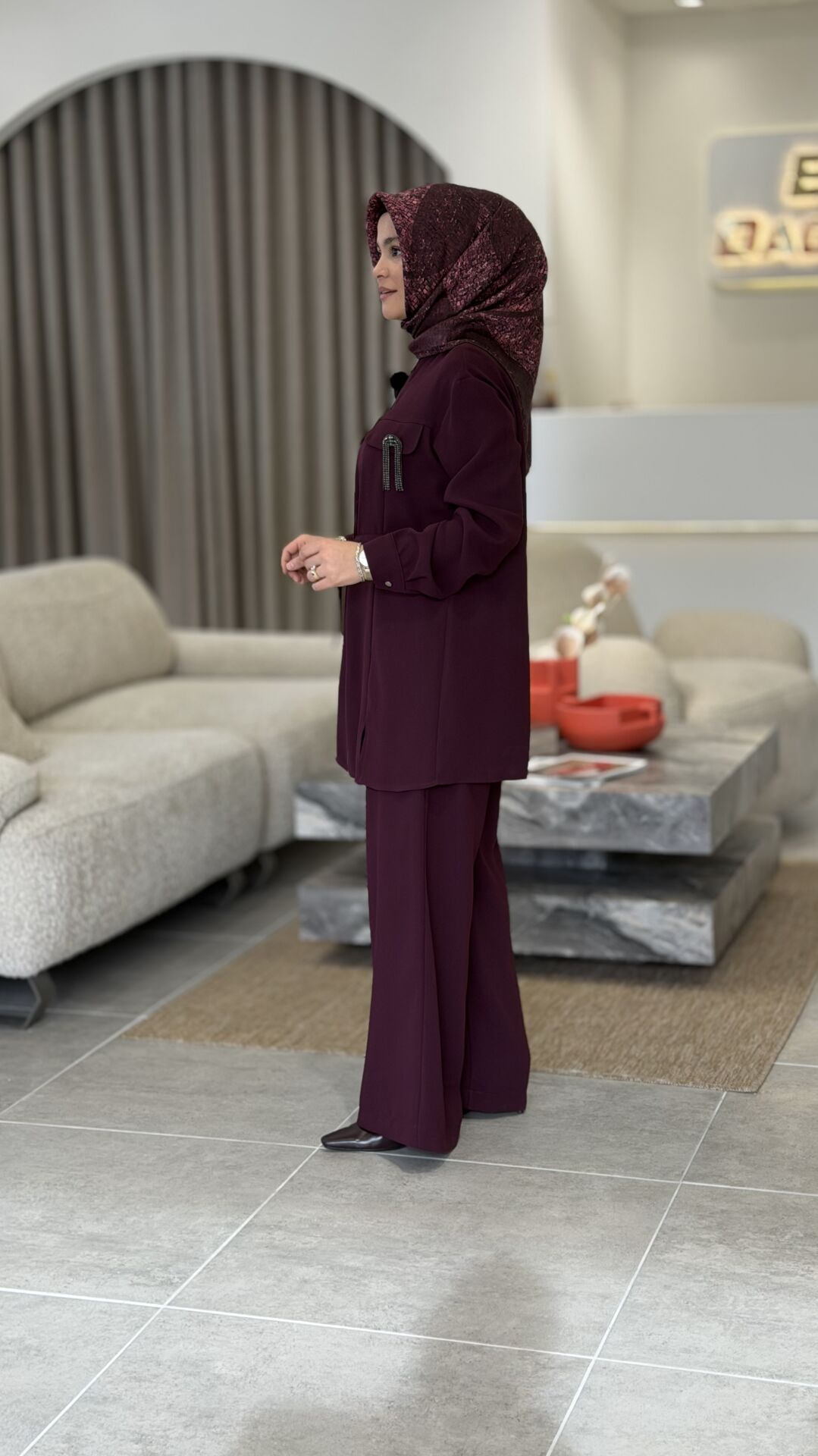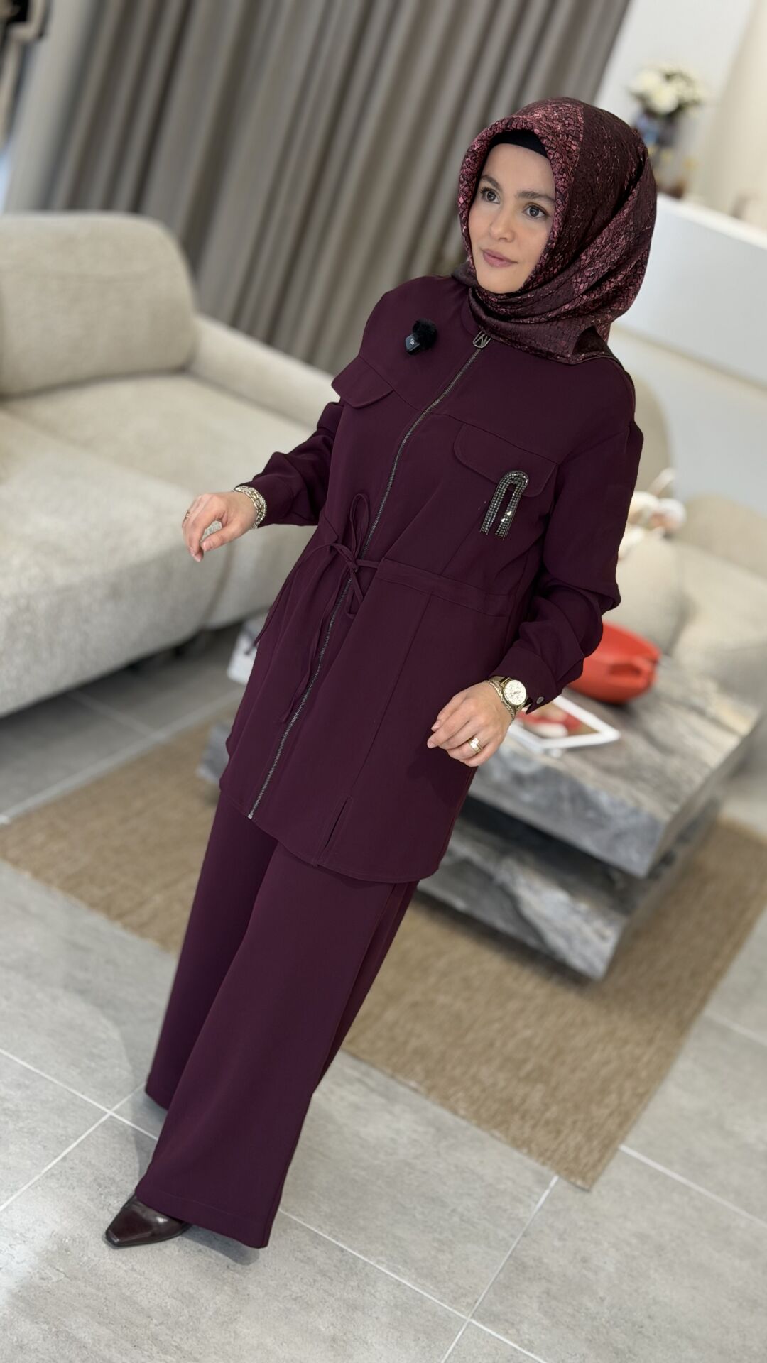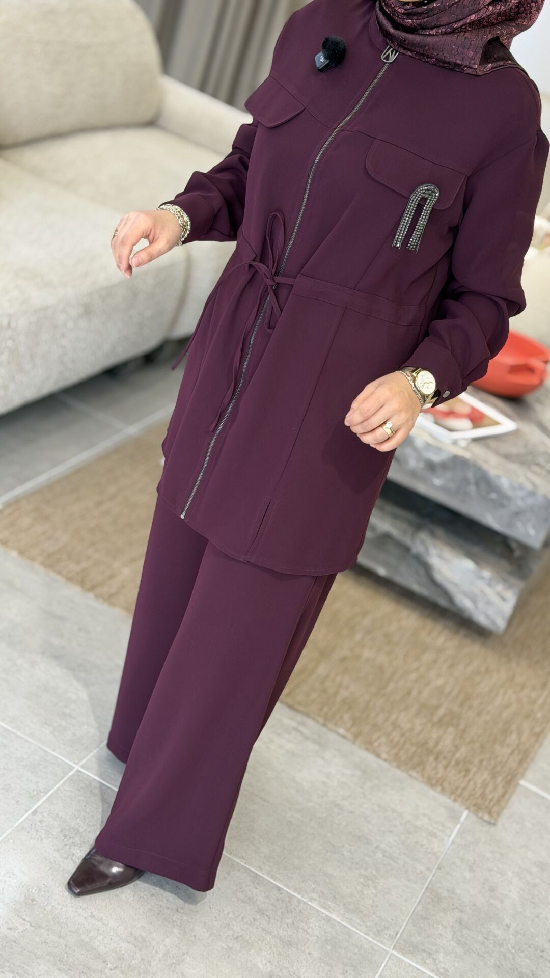 ARMİNE KREP PANTOLONLU TAKIM MÜRDÜM