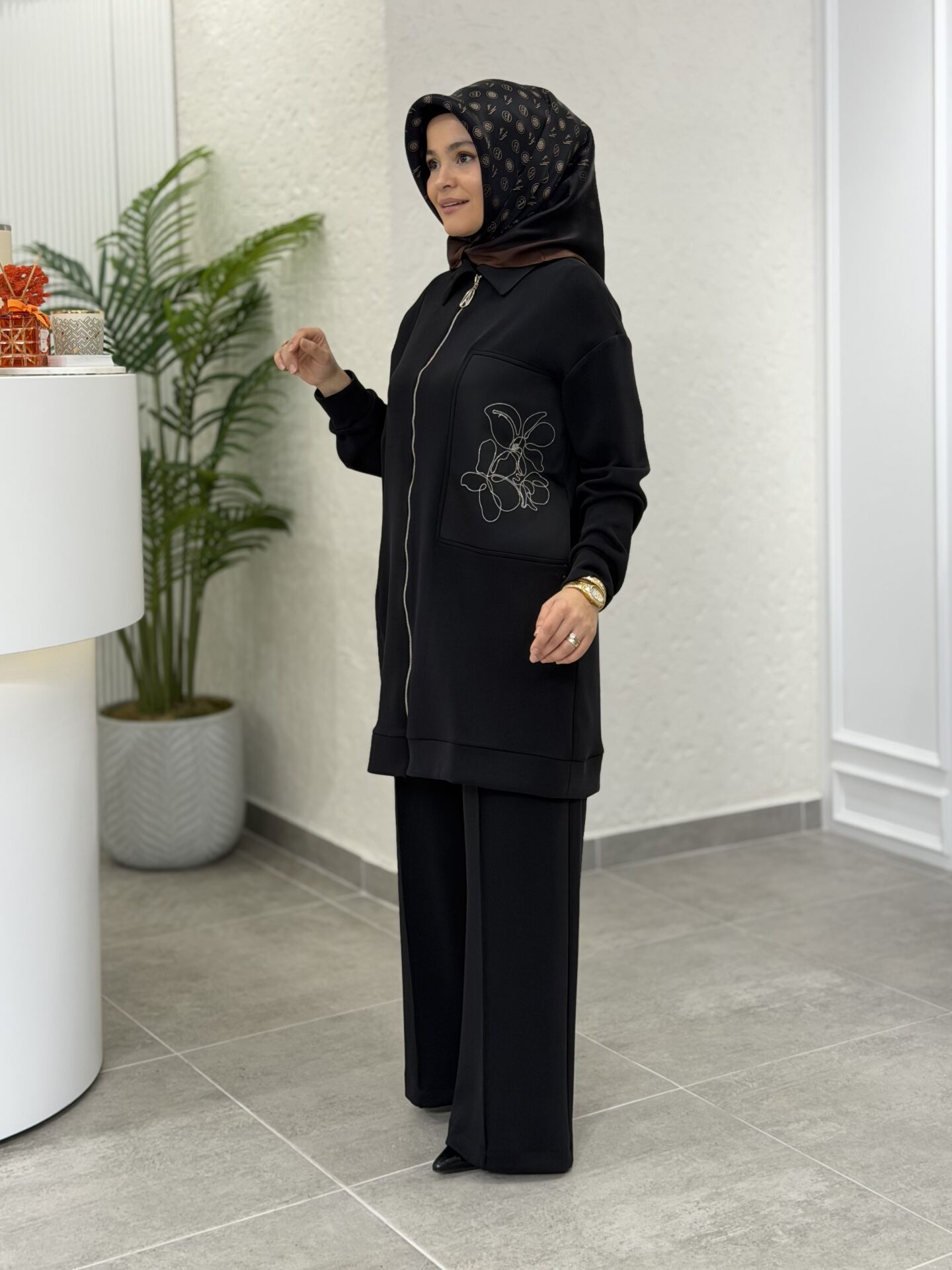 ARMİNE OYSHO SATEN KOMBİNLİ PANTOLONLU TAKIM SİYAH