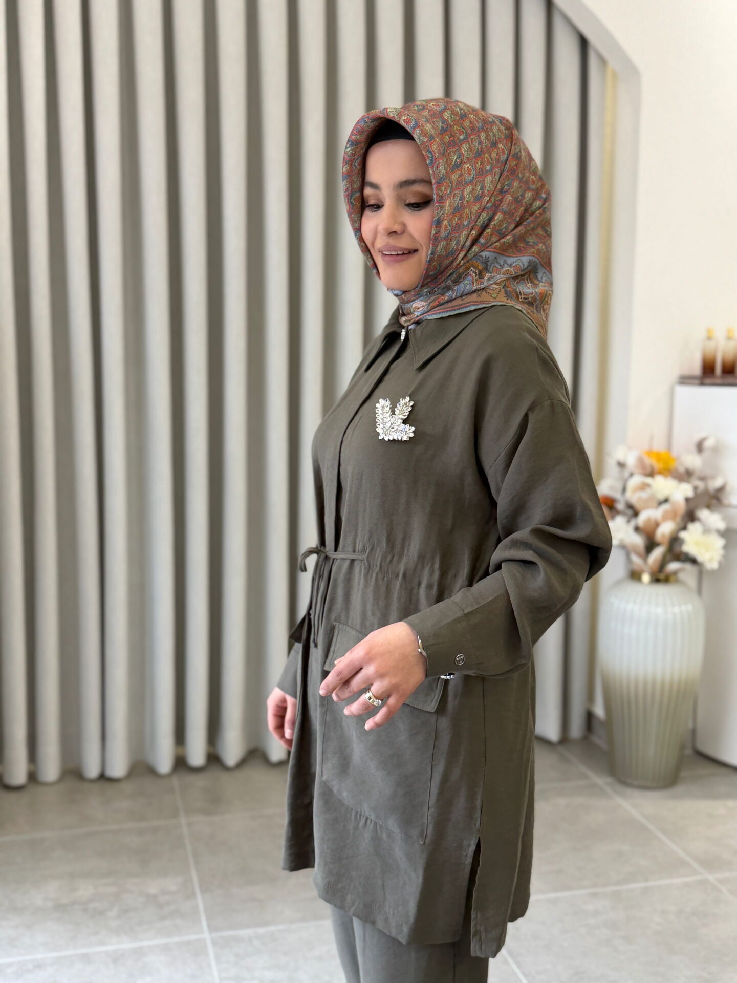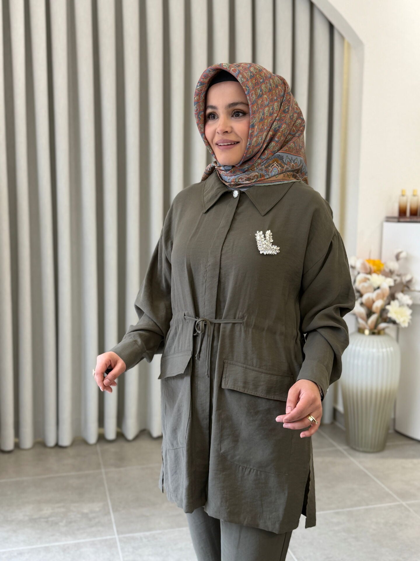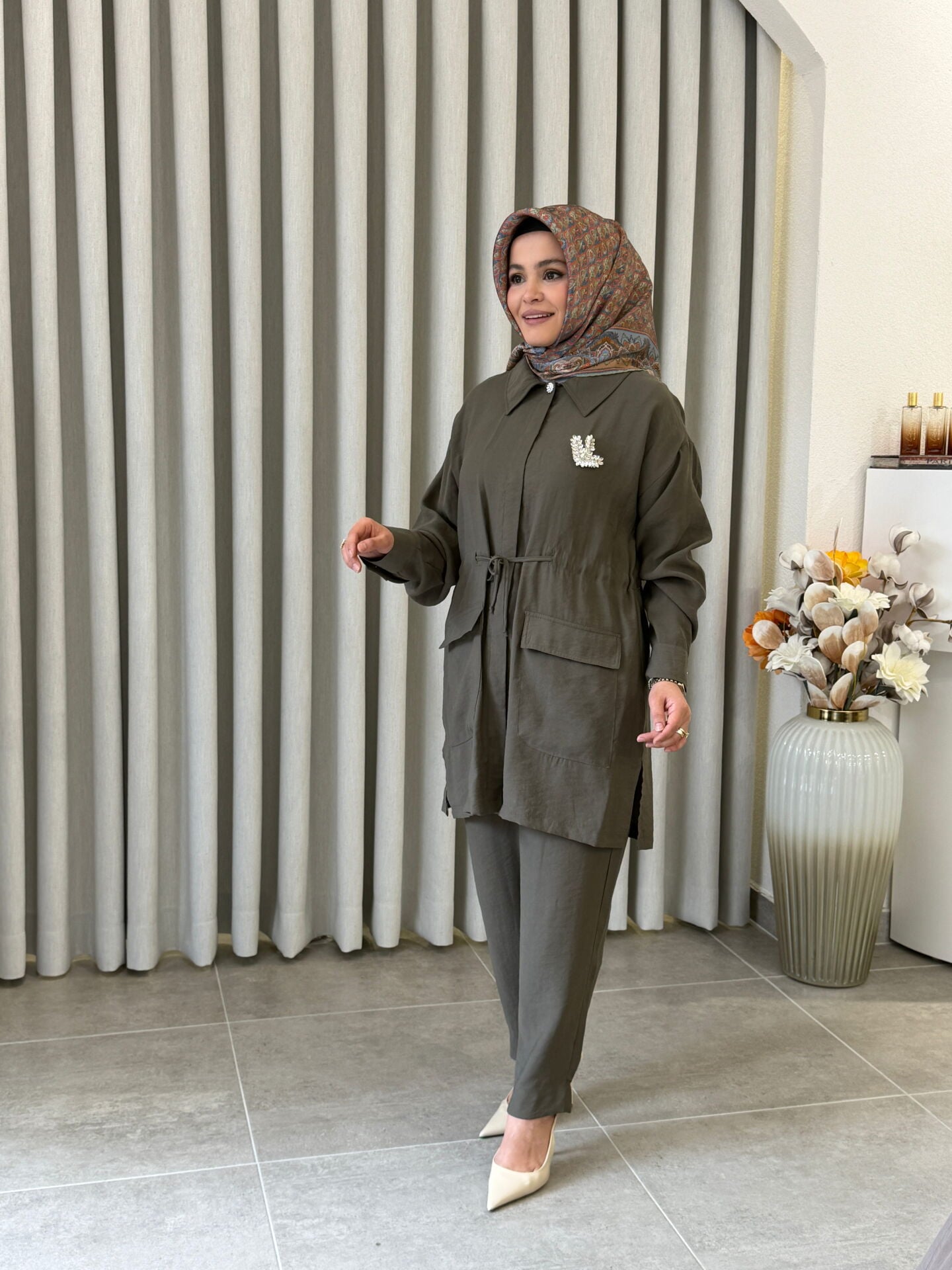 ARMİNE TREND MODAL PANTALONLU TAKIM HAKİ