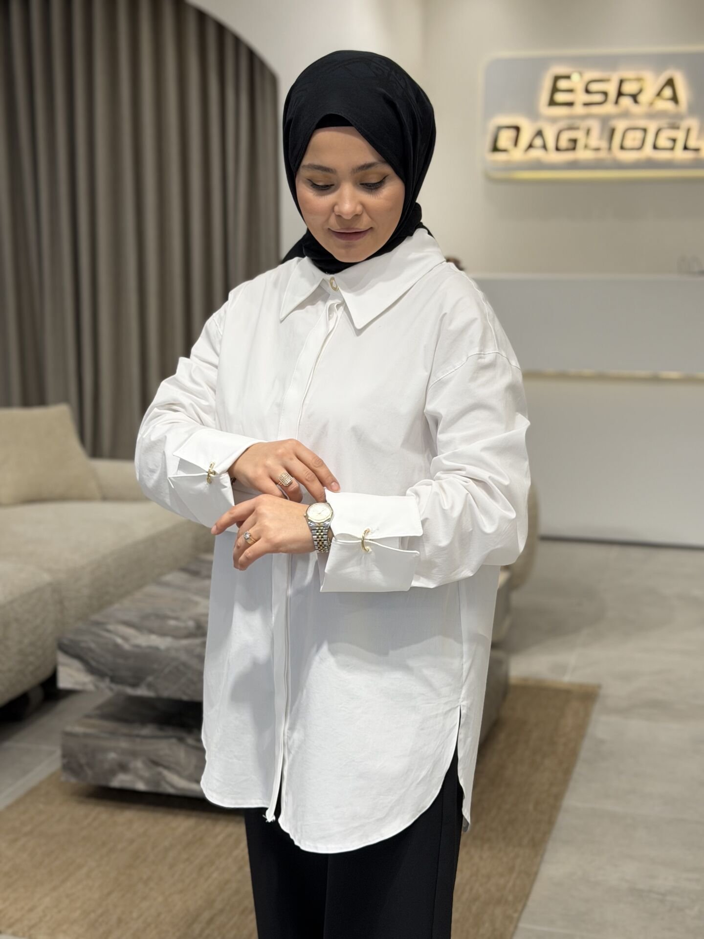 ARMİNE TREND OVERSİZE KOL AKSESURARLI GÖMLEK BEYAZ