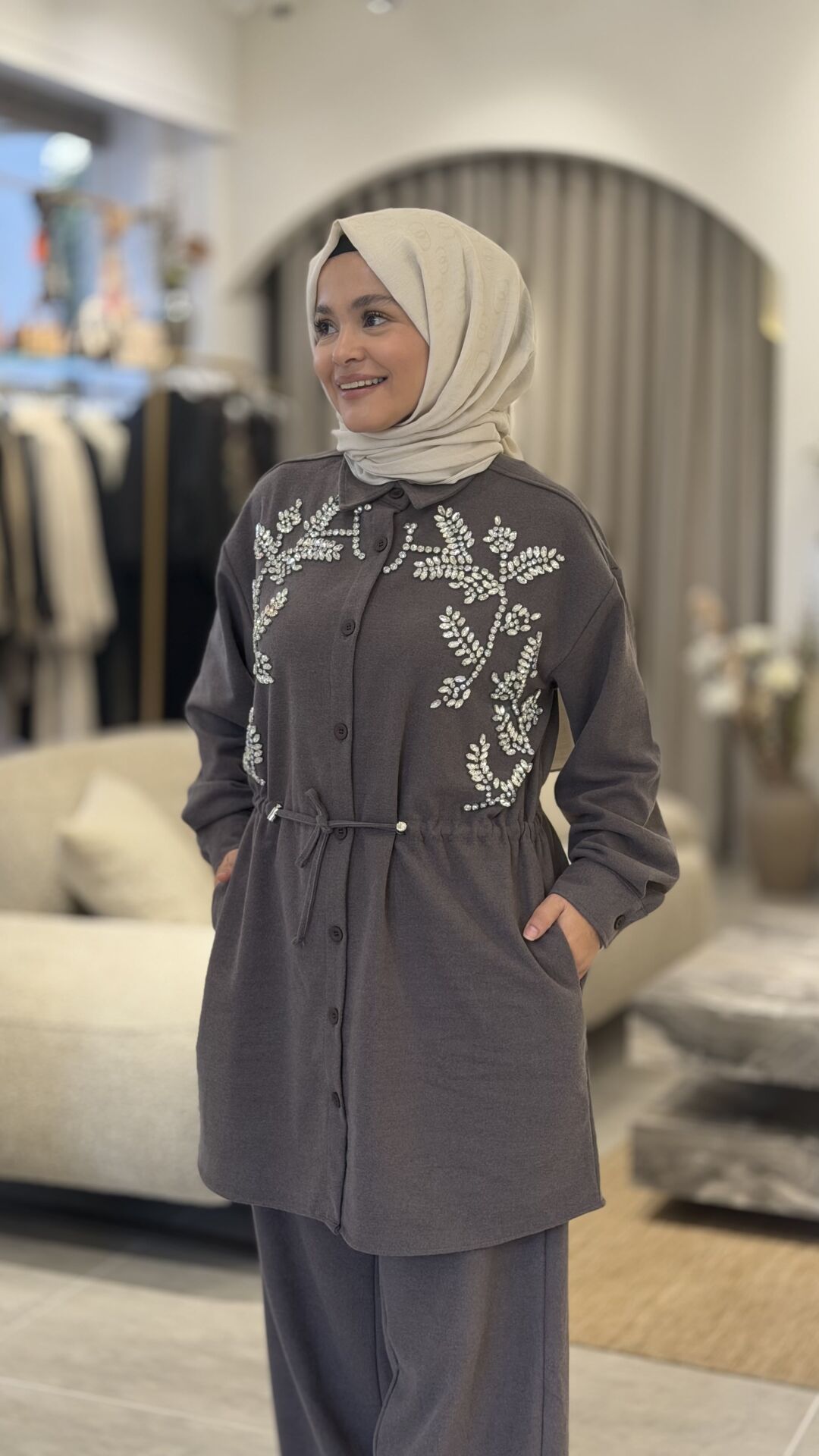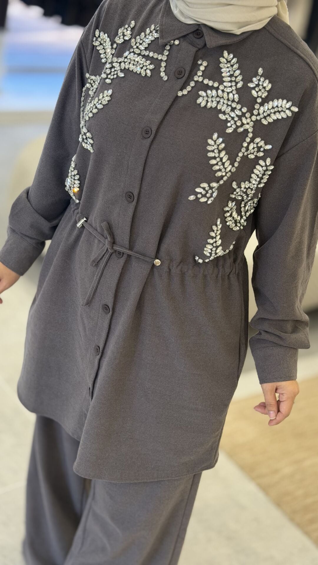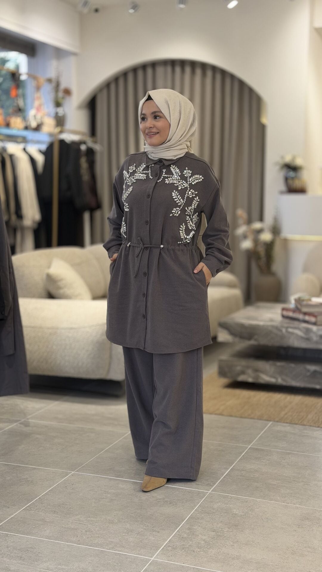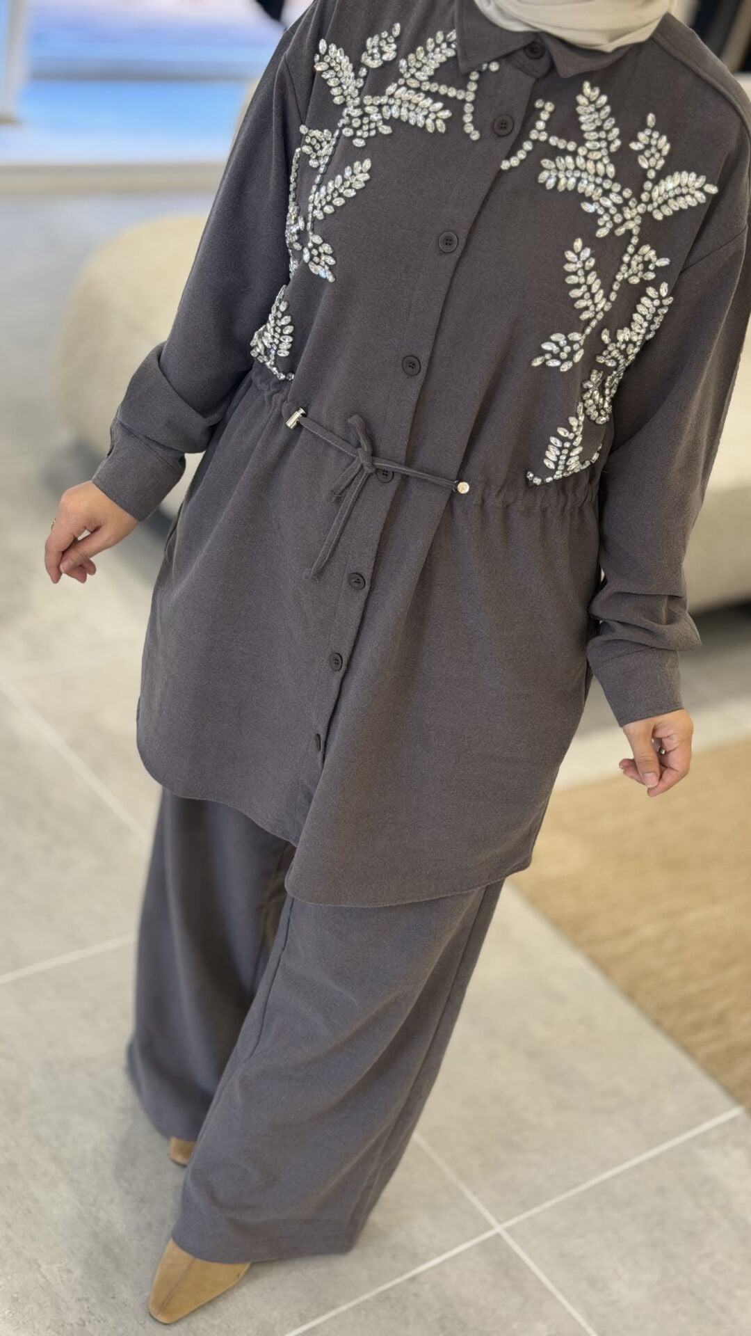 KAŞE KUMAŞ TAŞLI TASARIM PANTOLONLU TAKIM
