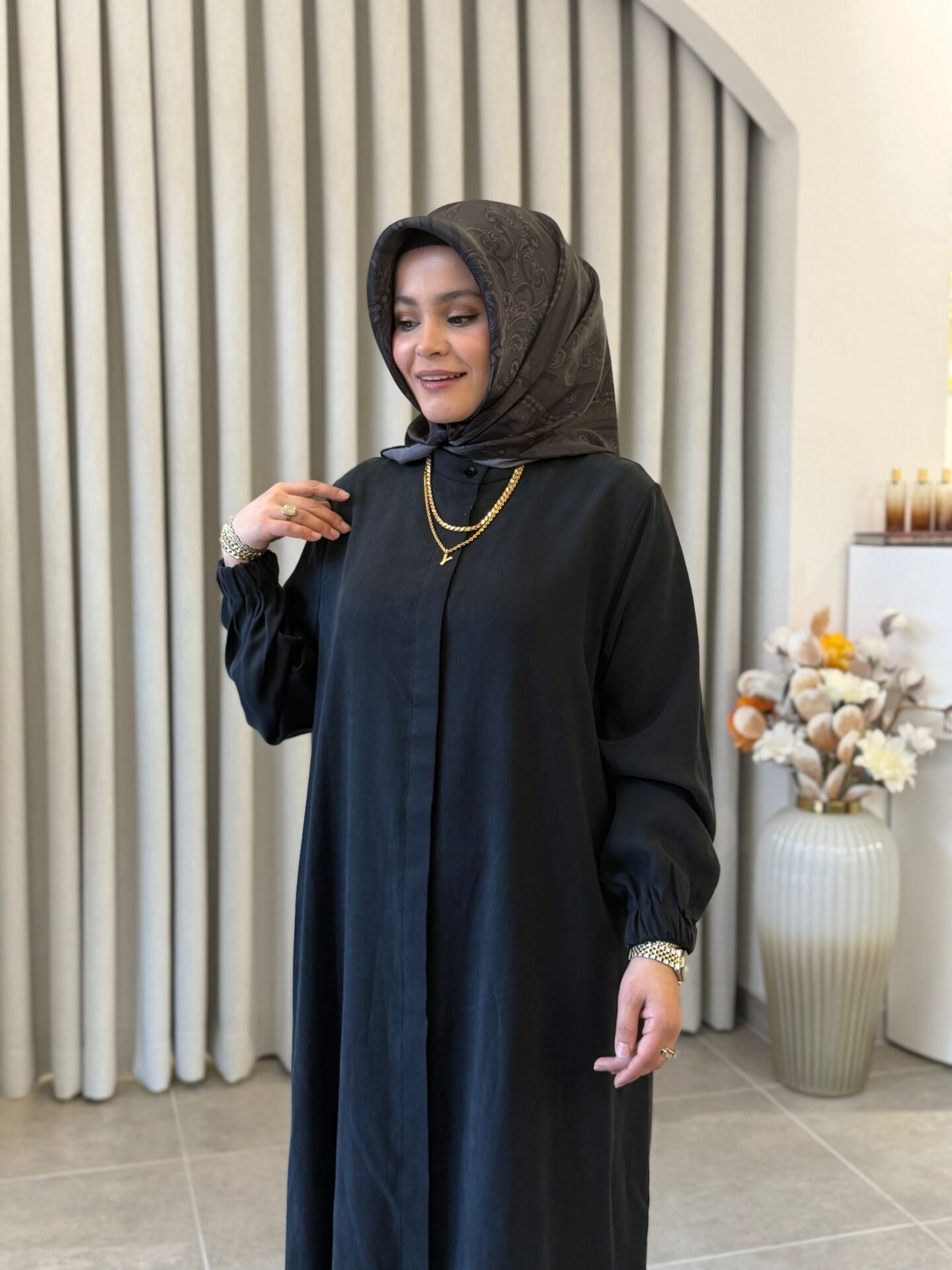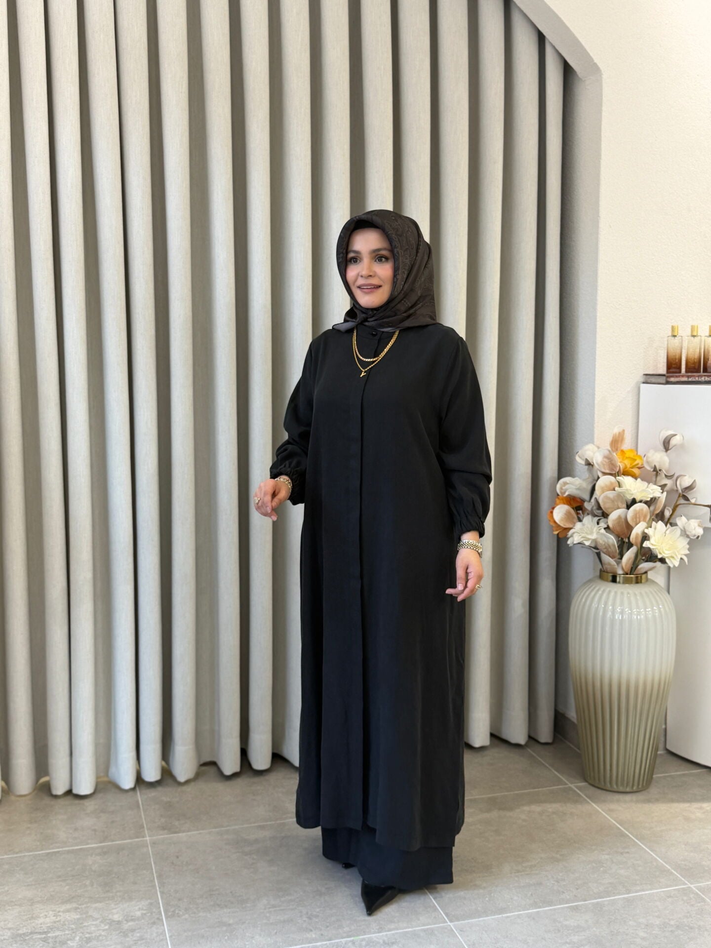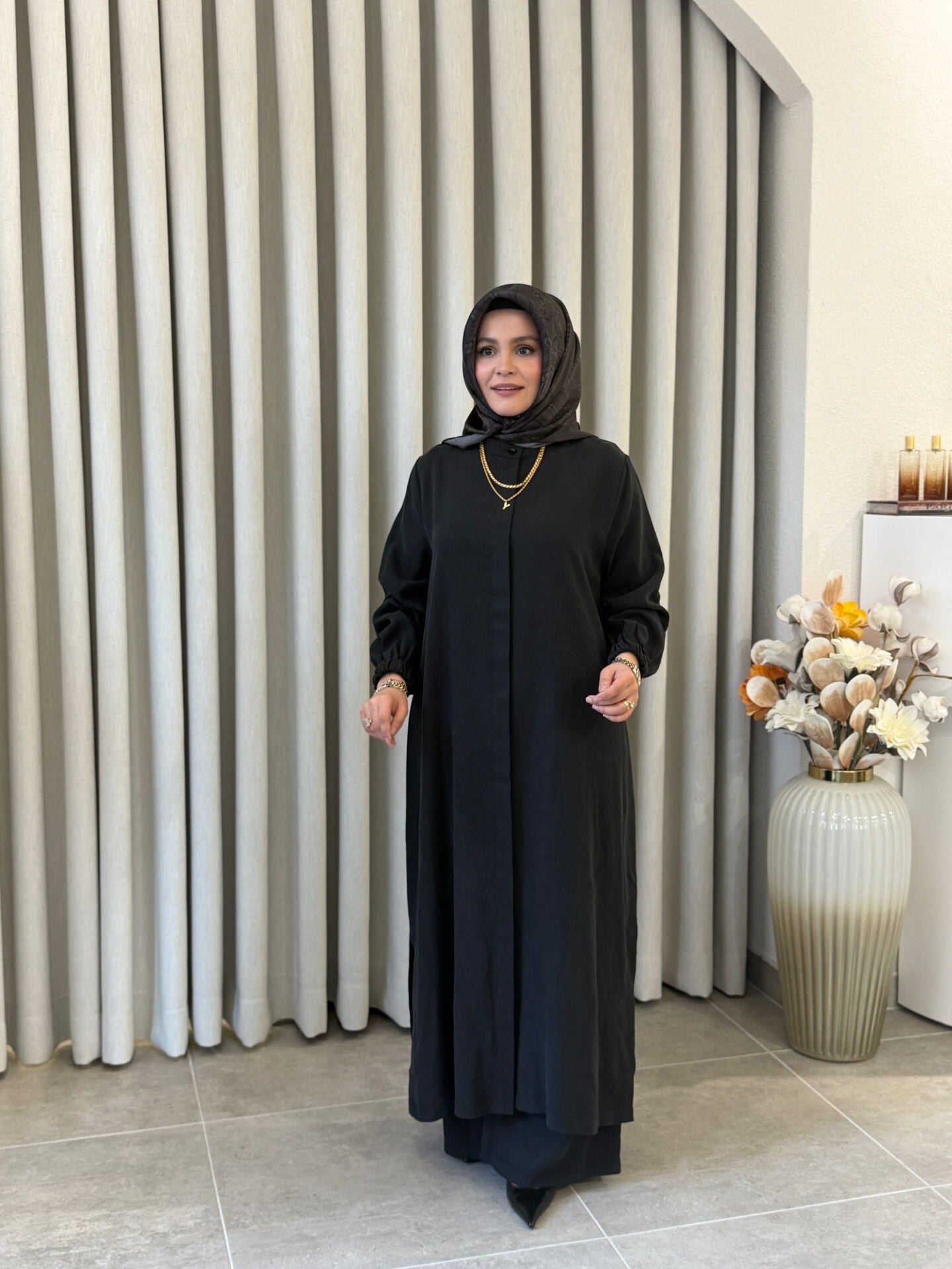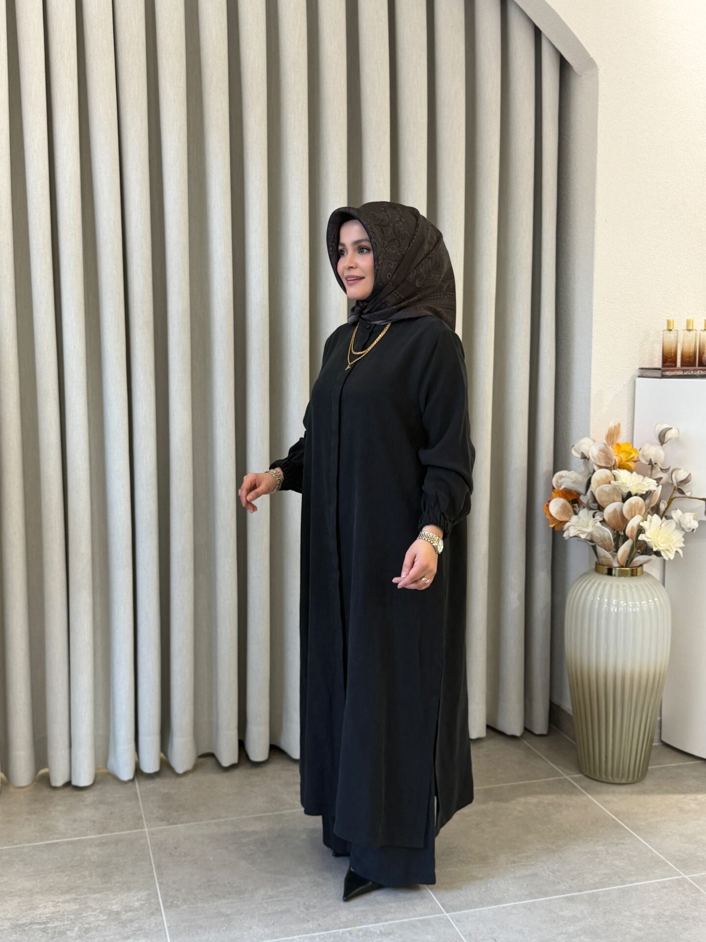 İPEK CUPRA PANTOLONLU TAM BOY TAKIM SİYAH