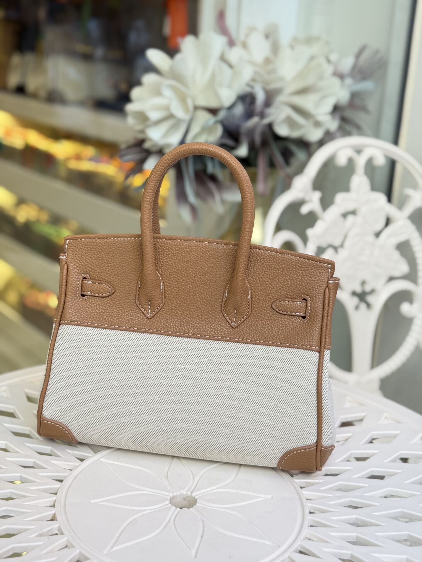 LEVİDOR KANVAS İTHAL DERİ ÇANTA KAHVE