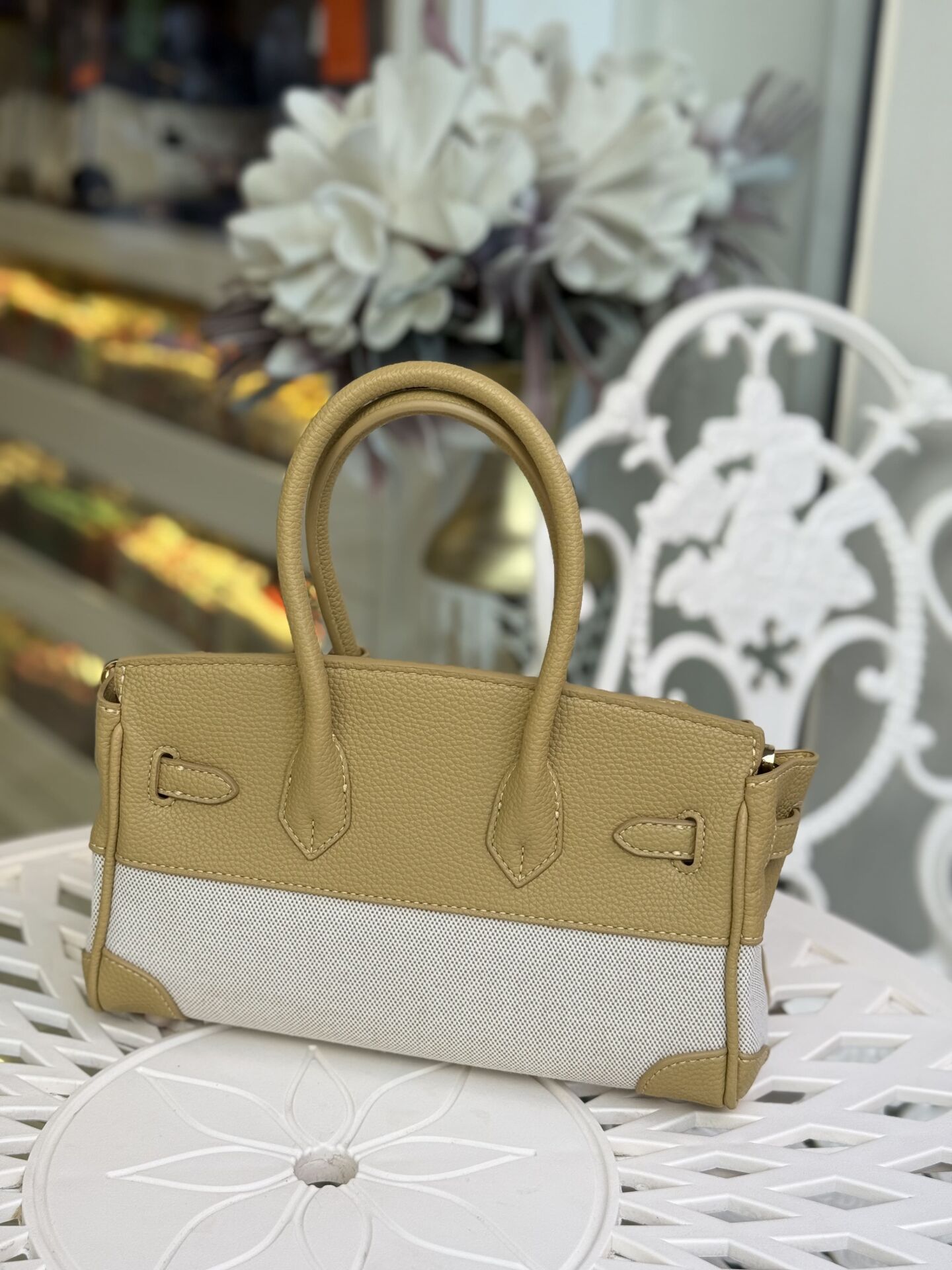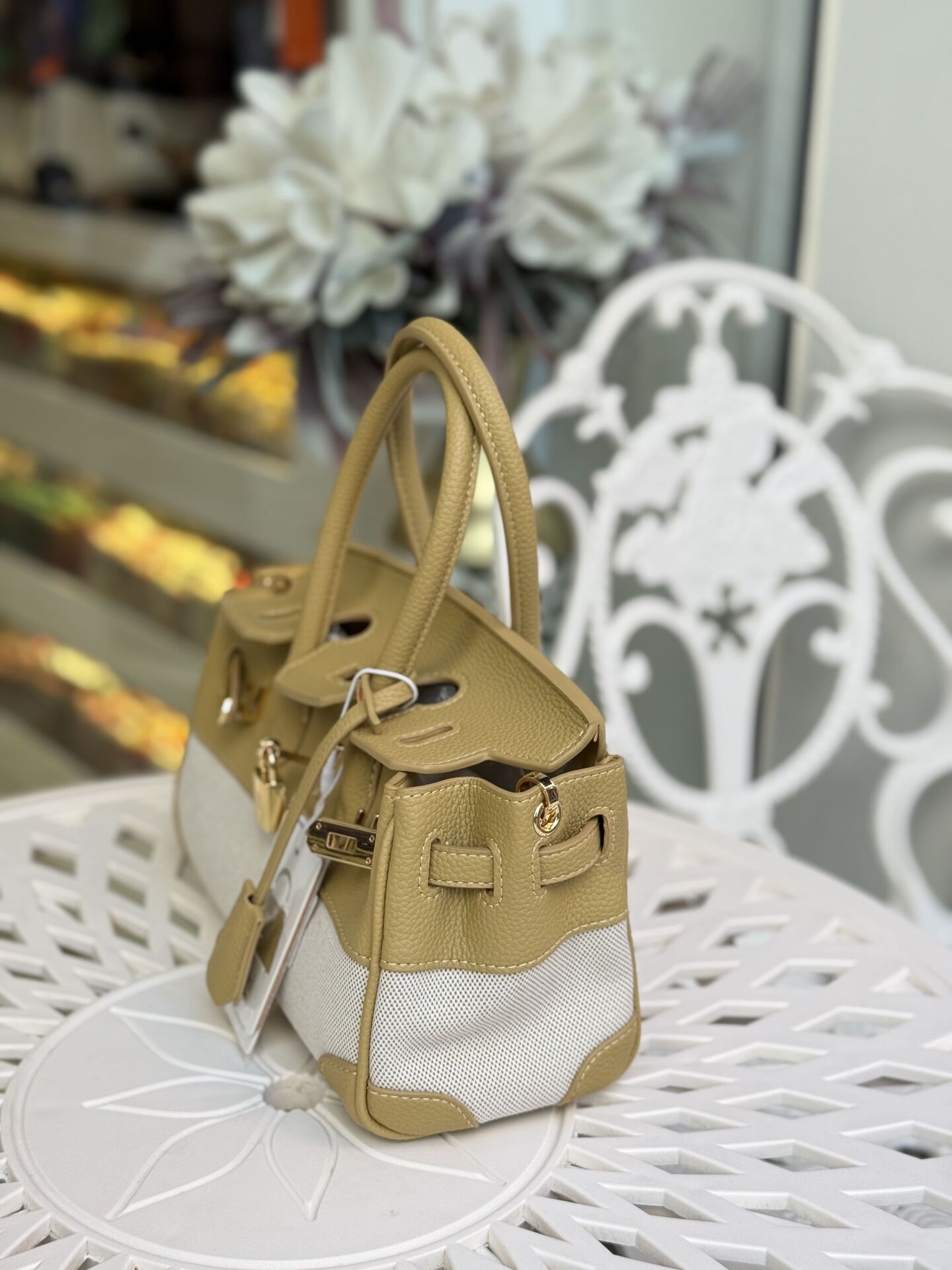 LEVİDOR KANVAS İTHAL DERİ ÇANTA SARI