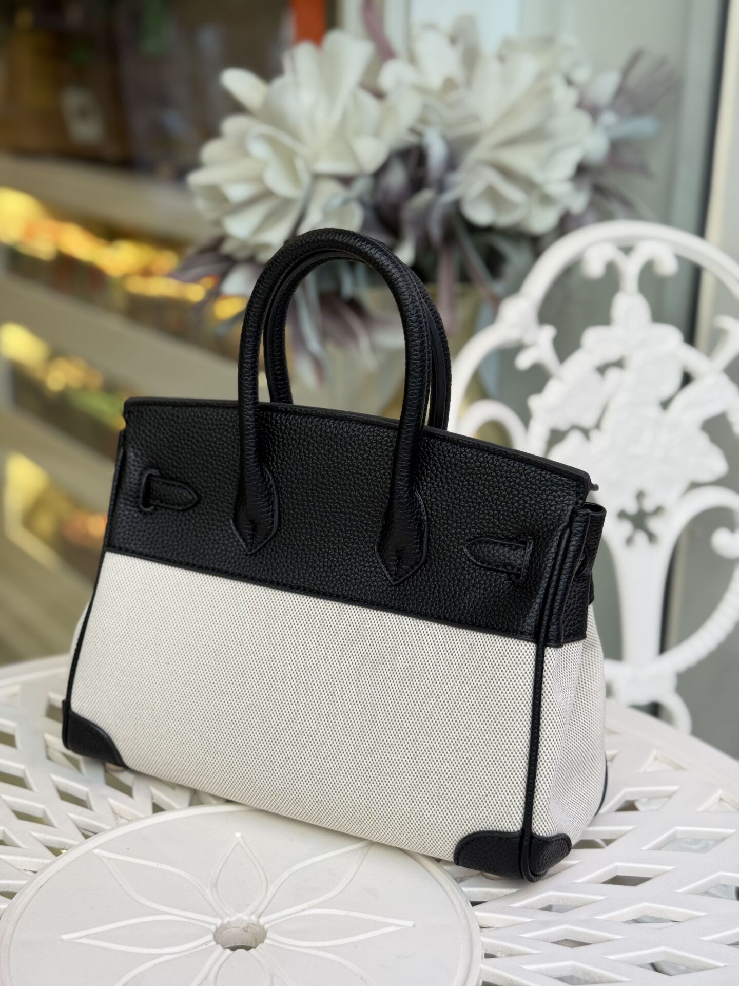 LEVİDOR KANVAS İTHAL DERİ ÇANTA SİYAH