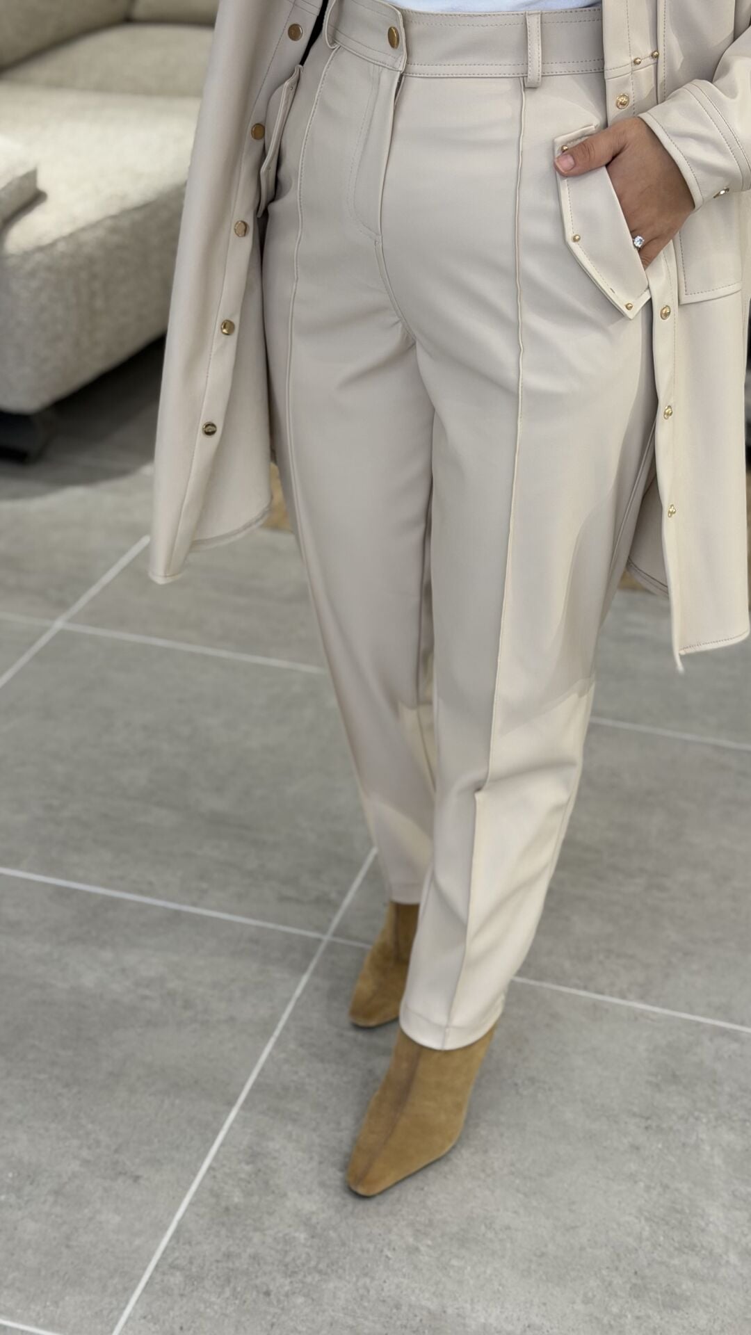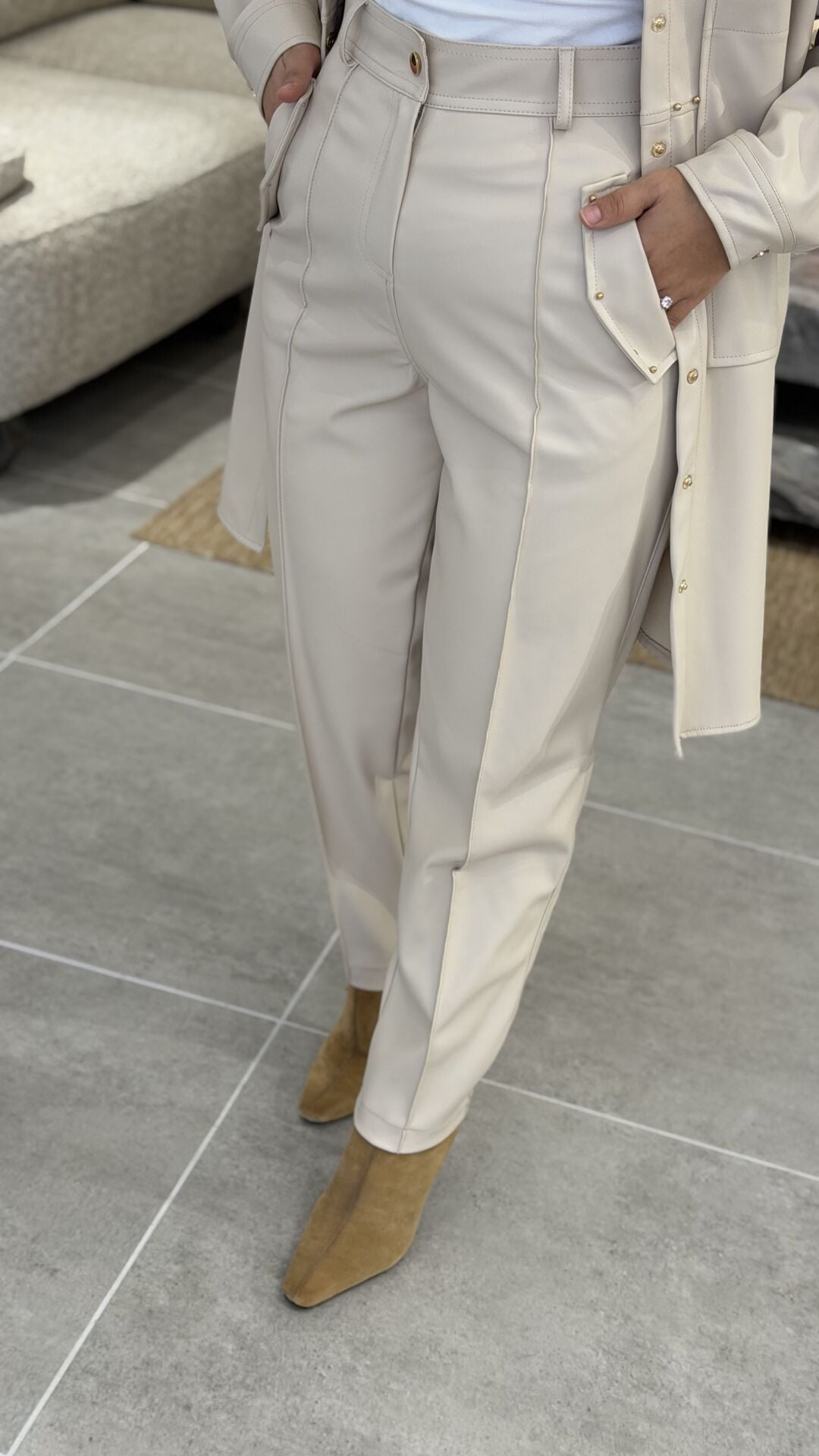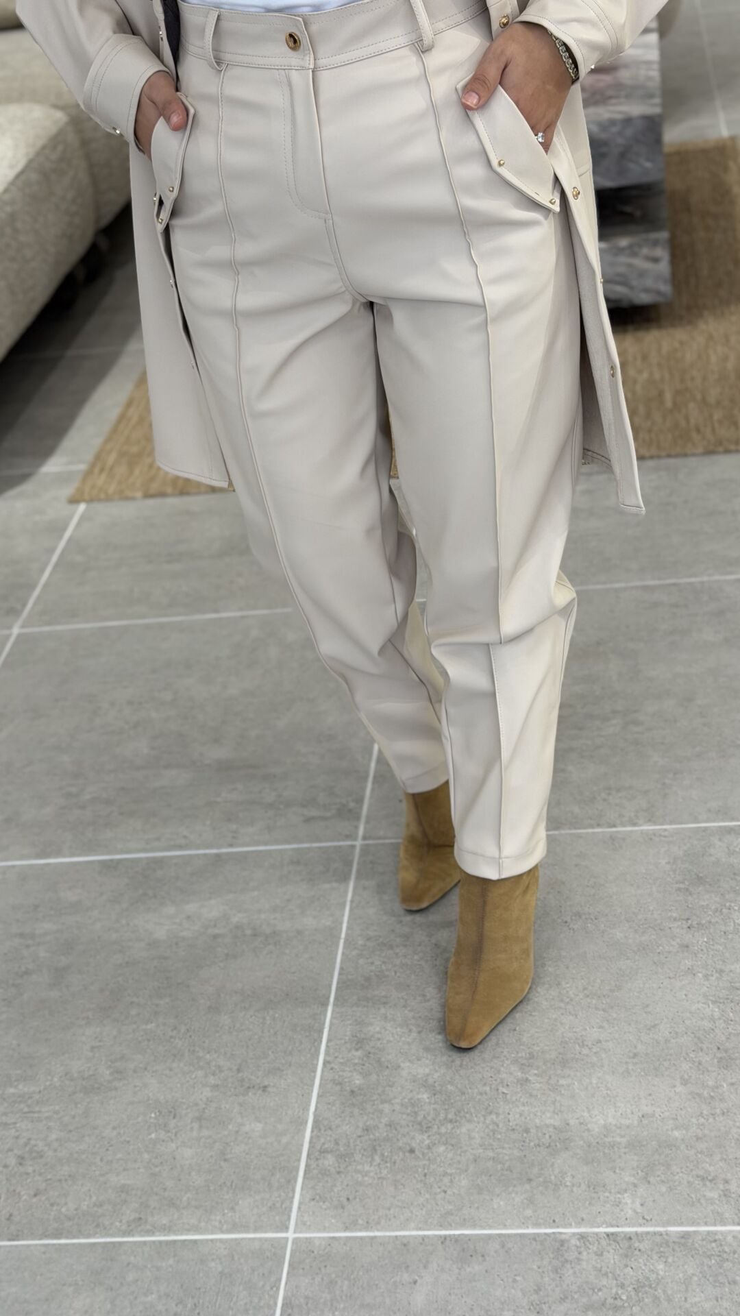 ŞARDONLU DERİ PANTOLON TAŞ