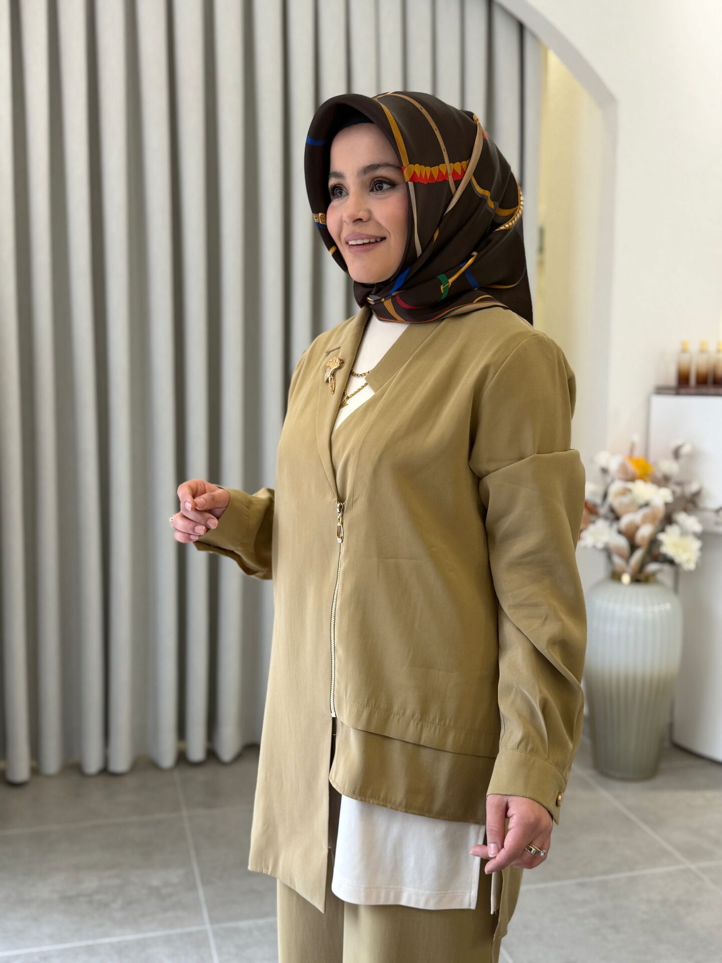 TIĞ TRİKO ASİMETRİK KESİM 3'LÜ TAKIM YAĞ YEŞİLİ