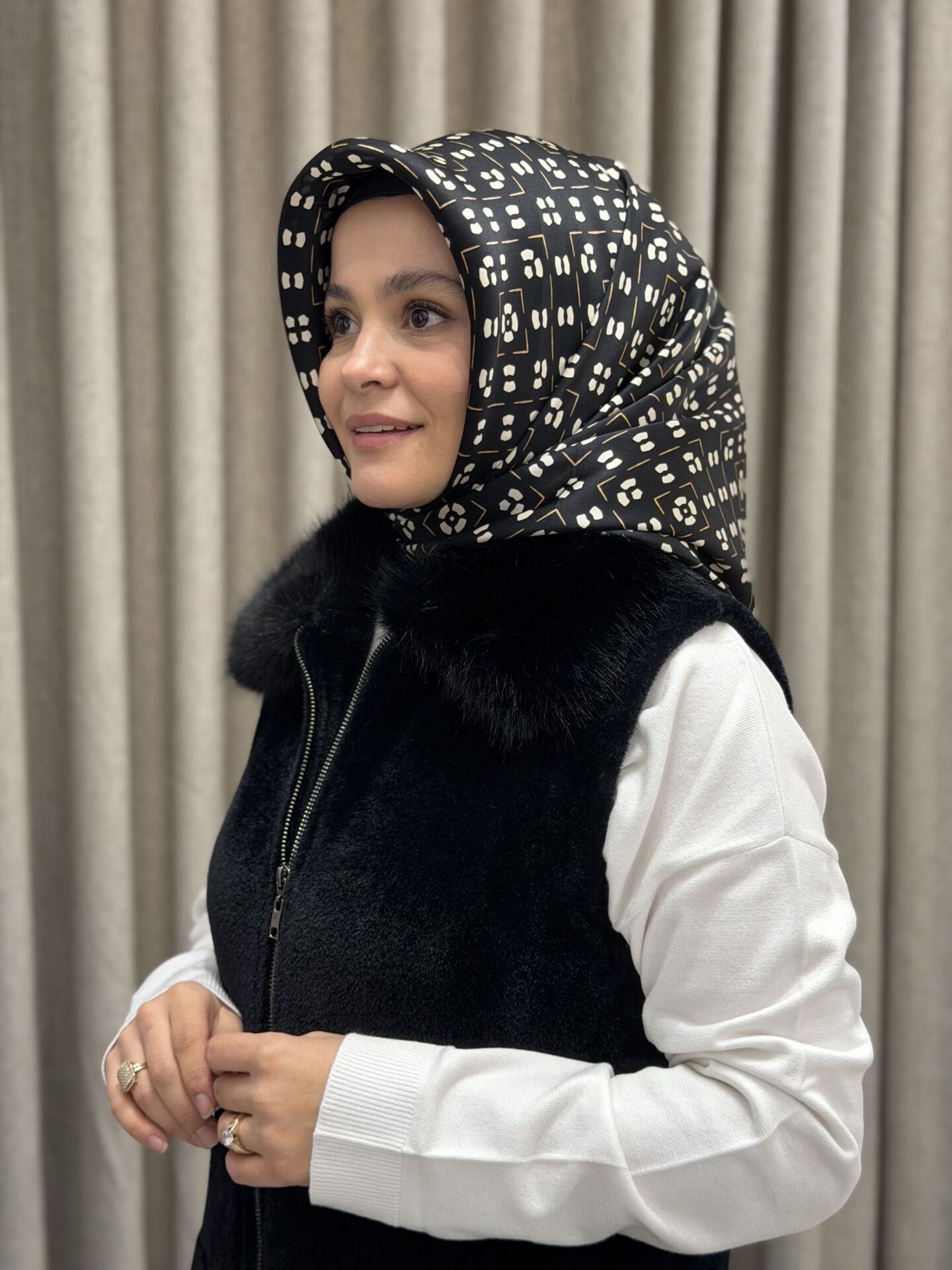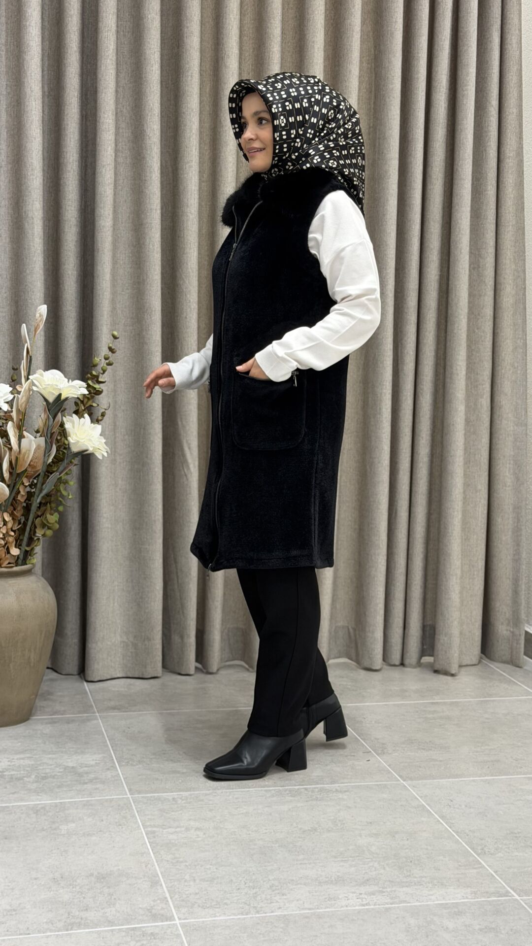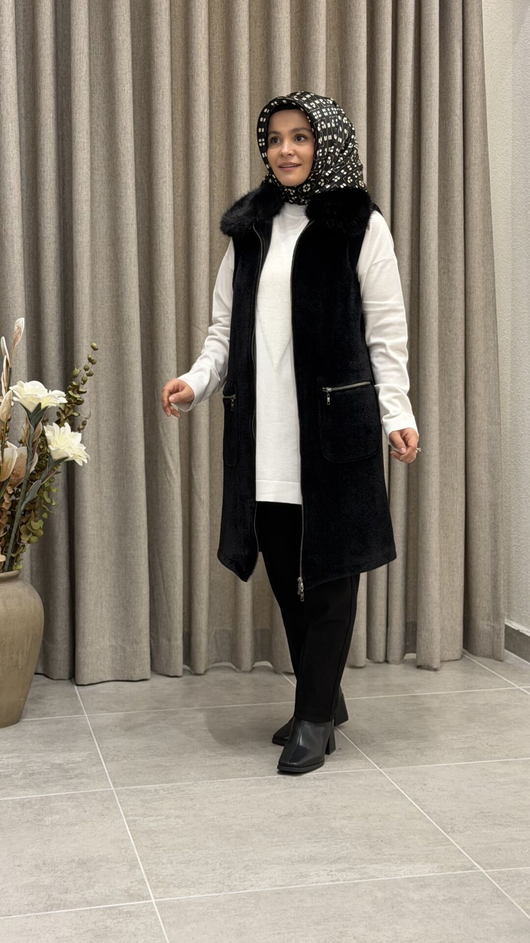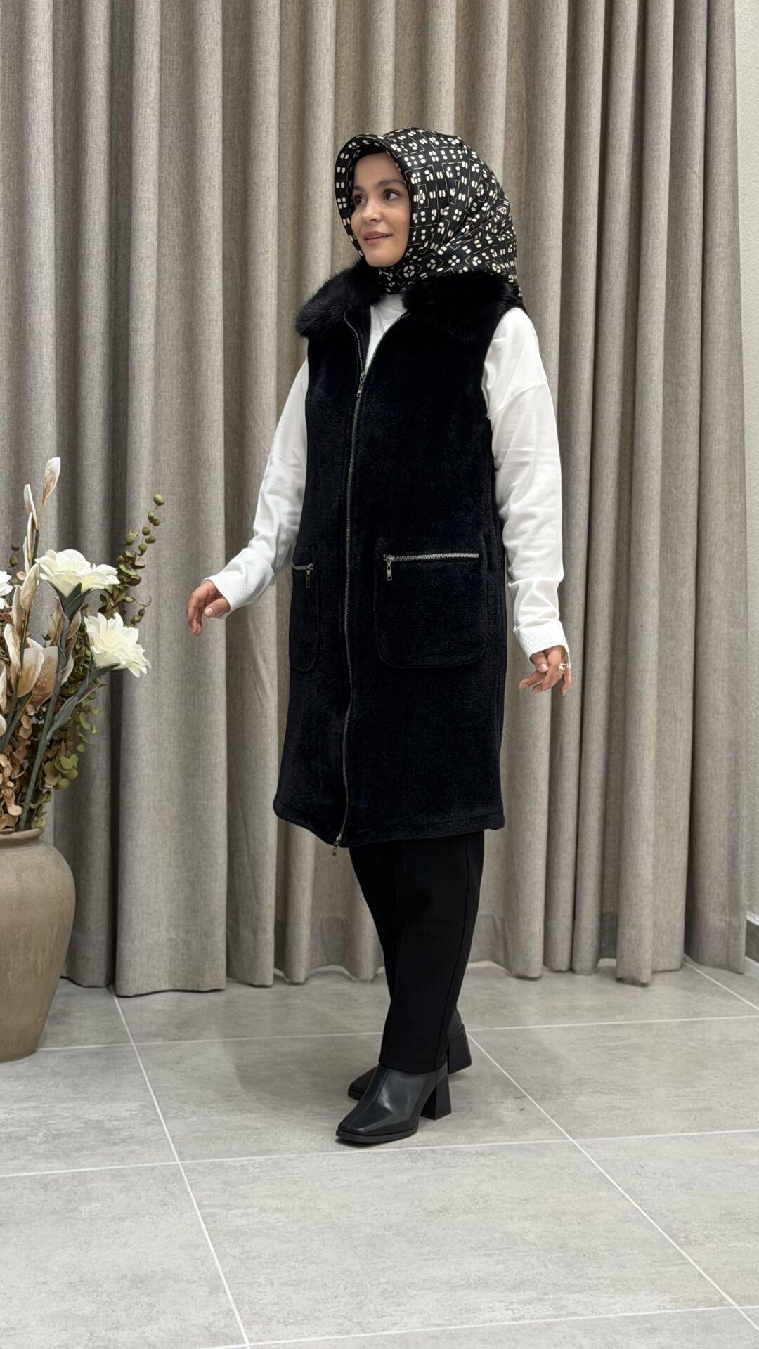 TIĞ TRİKO CEP DETAYLI TRİKO KÜRK DETAYLI YELEK SİYAH