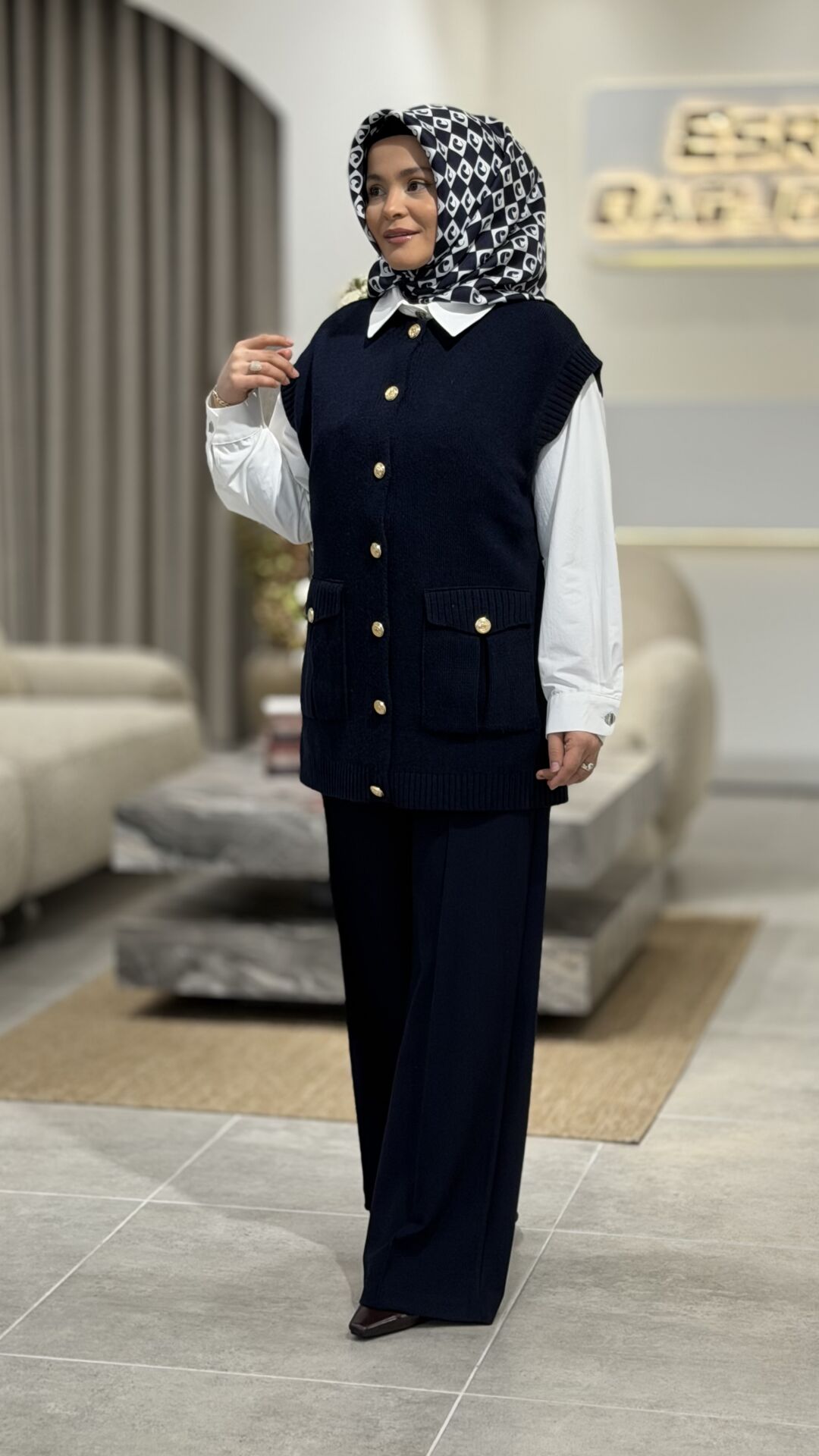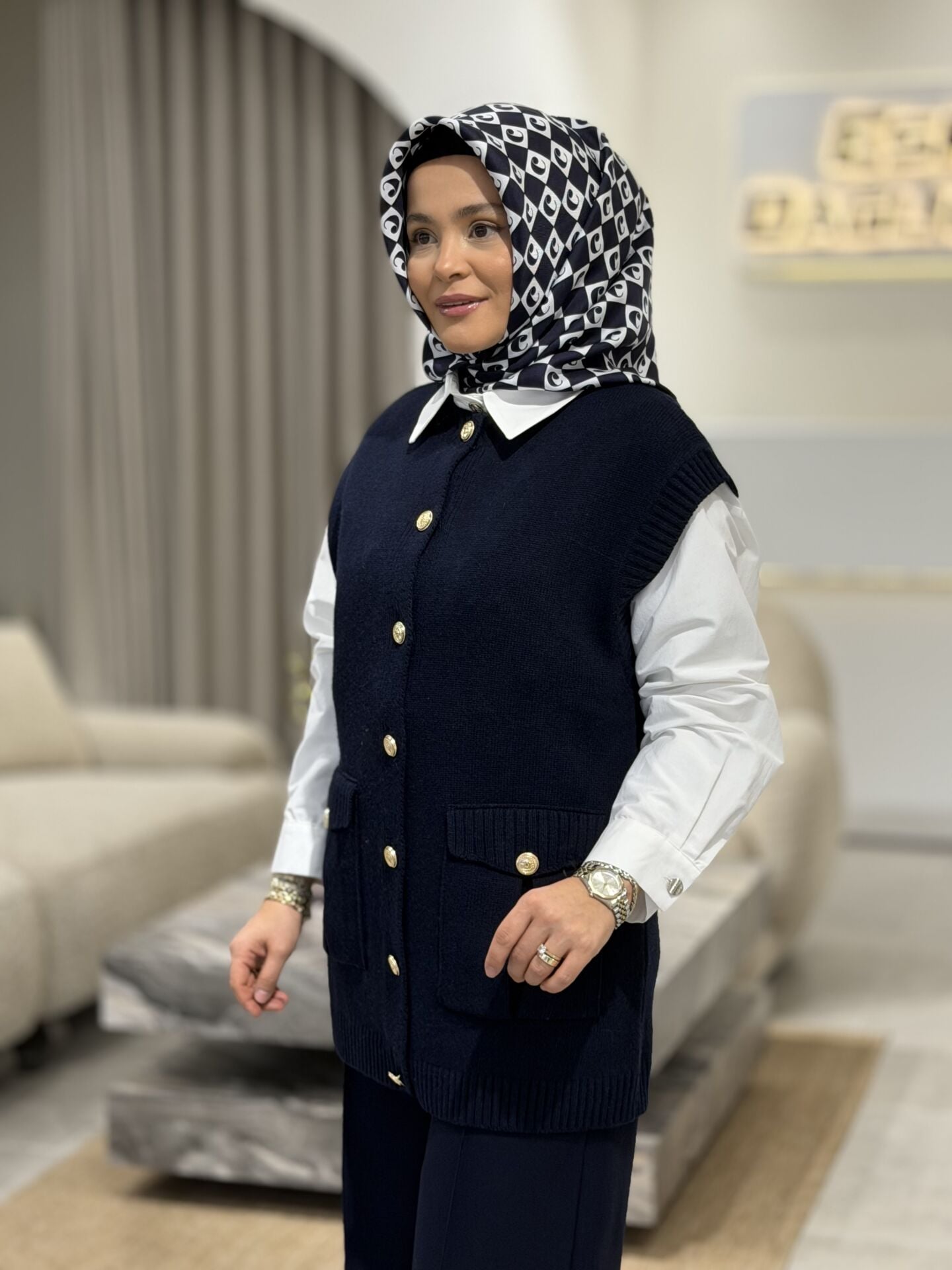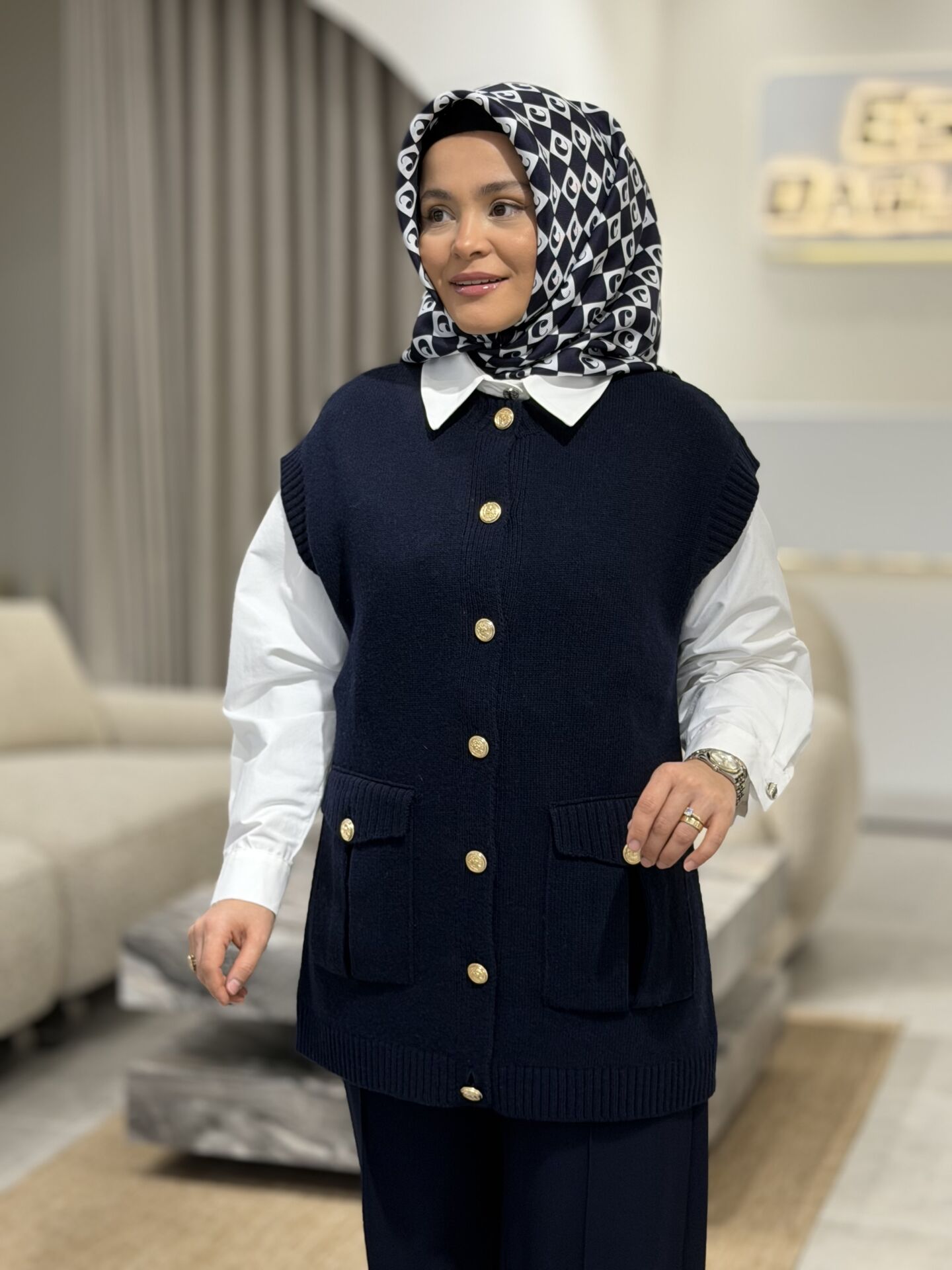 TIĞ TRİKO DÜĞME VE CEP DETAYLI YÜN SÜVETER LACİVERT