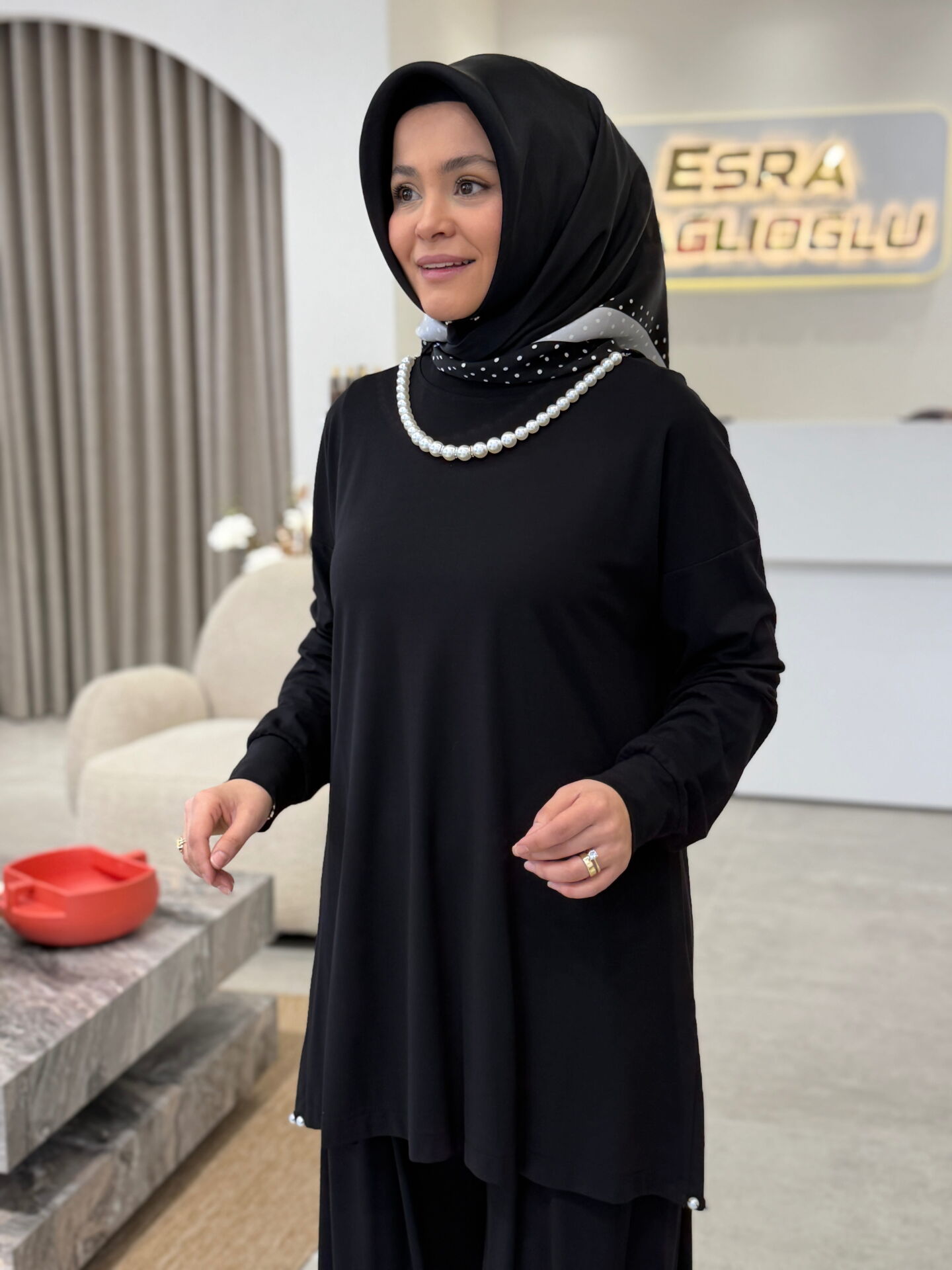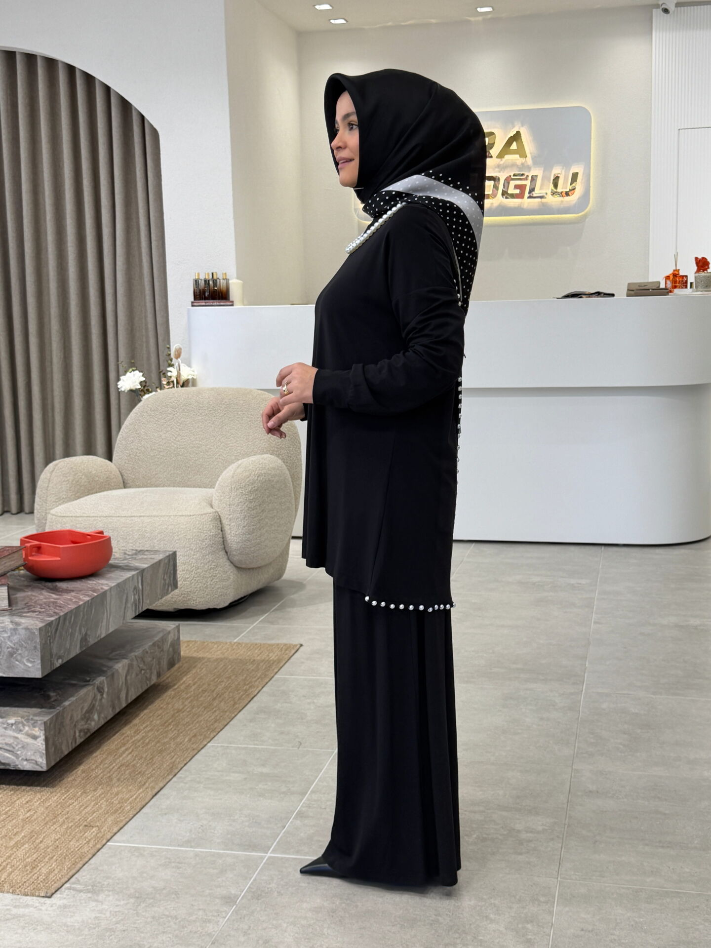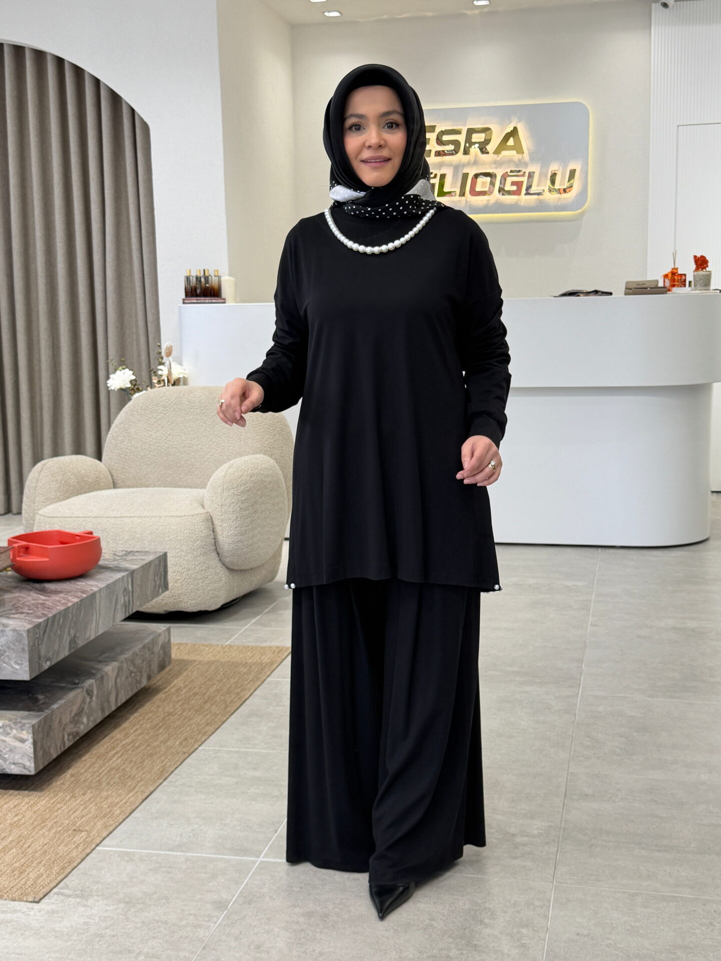 TIĞ TRİKO İNCİ DETAYLI TAKIM SİYAH