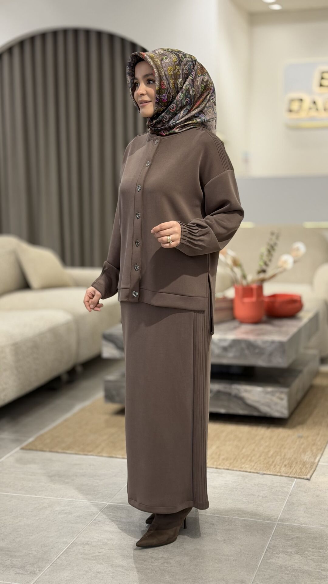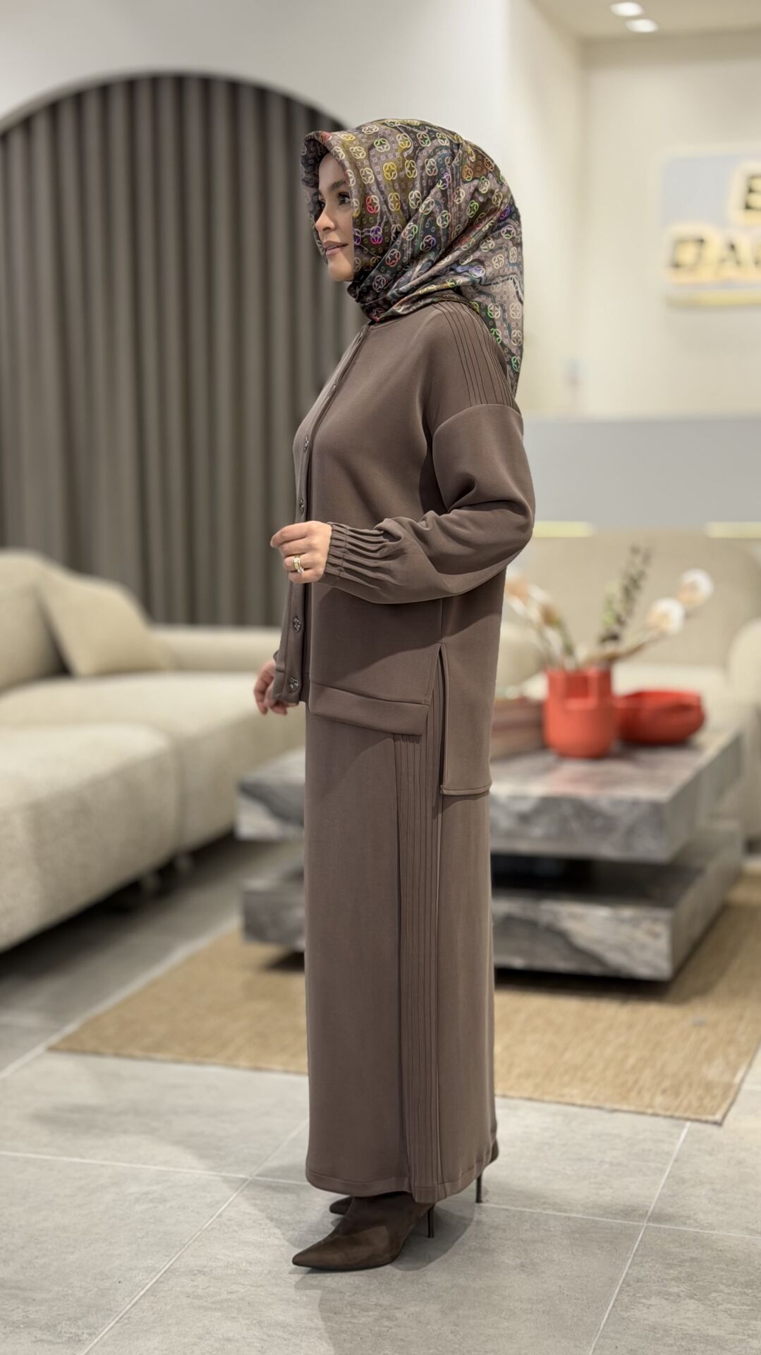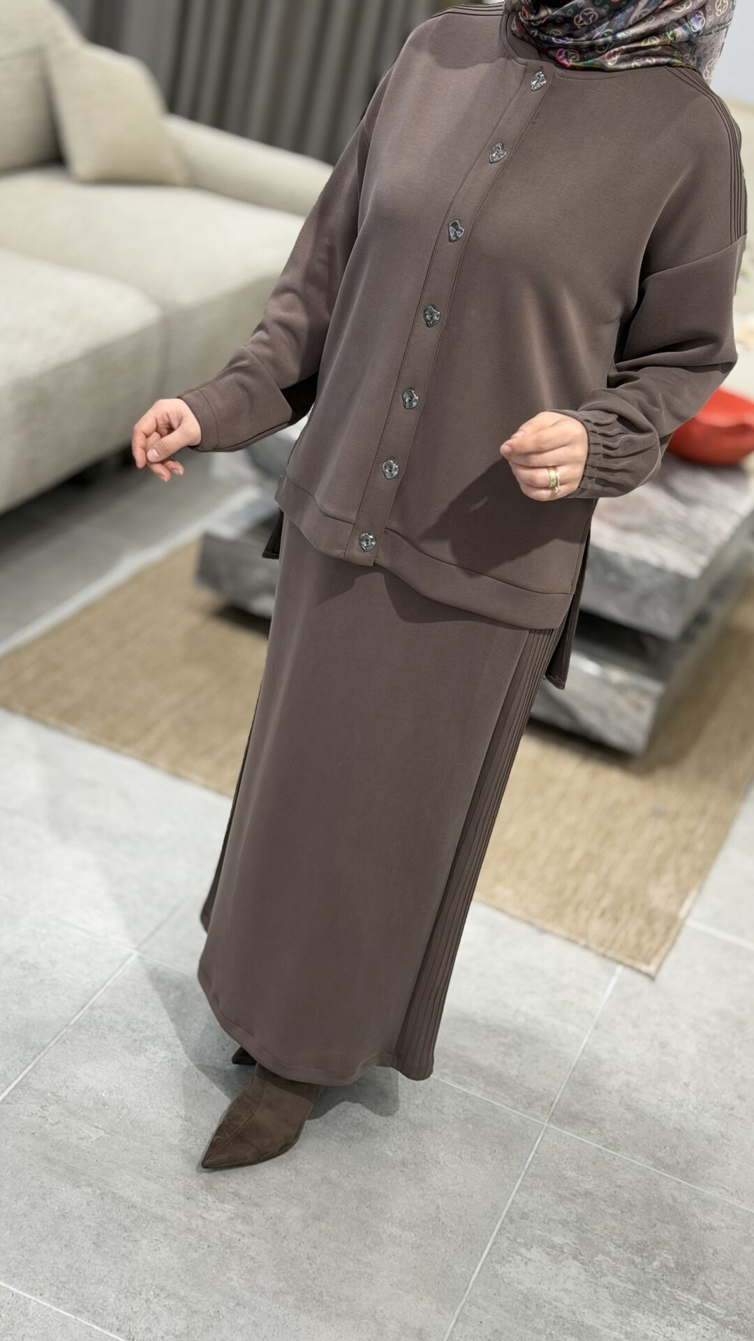 TIĞ TRİKO OYSHO KUMAŞ ETEKLİ TAKIM KAHVE