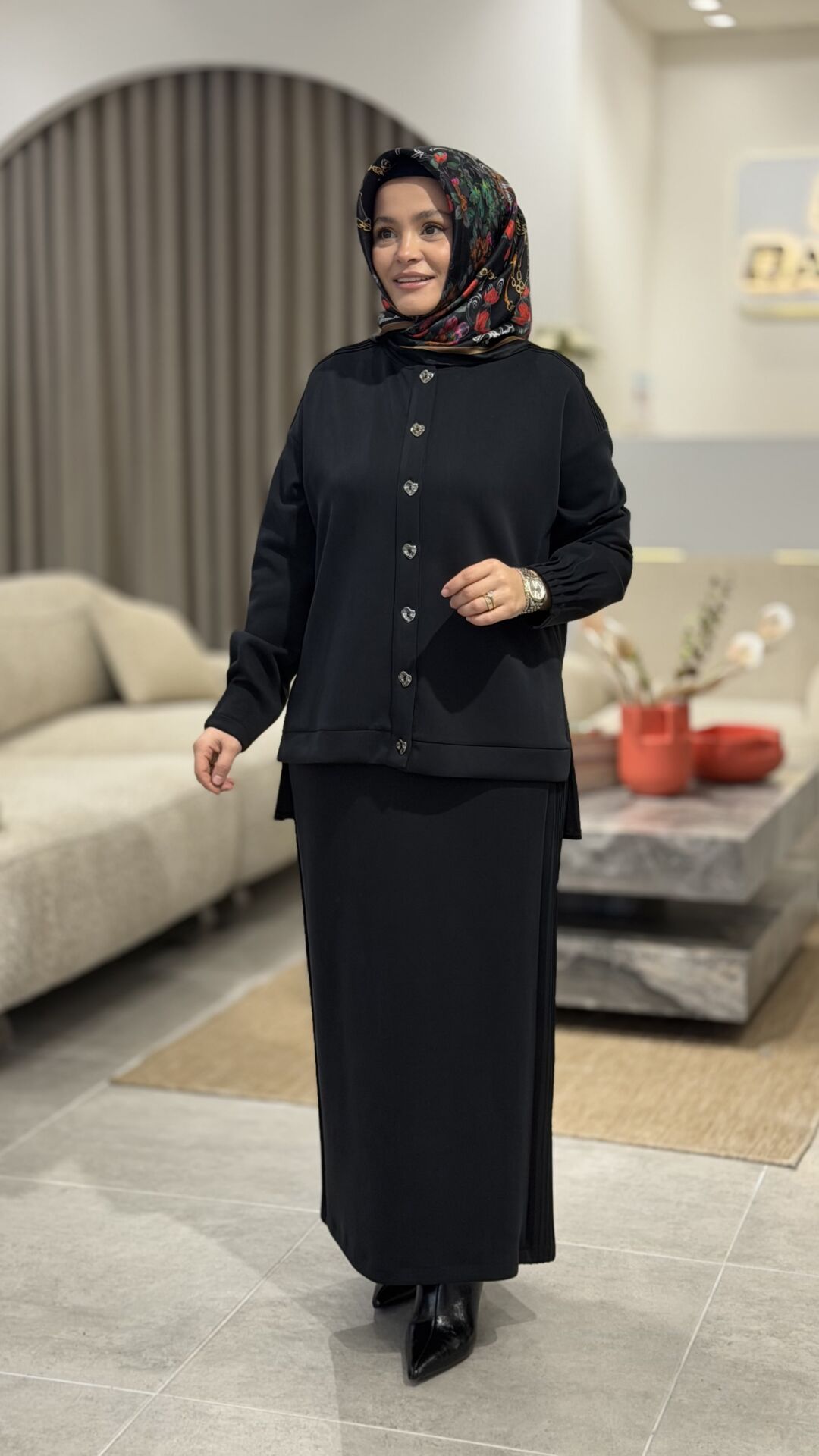 TIĞ TRİKO OYSHO KUMAŞ ETEKLİ TAKIM SİYAH