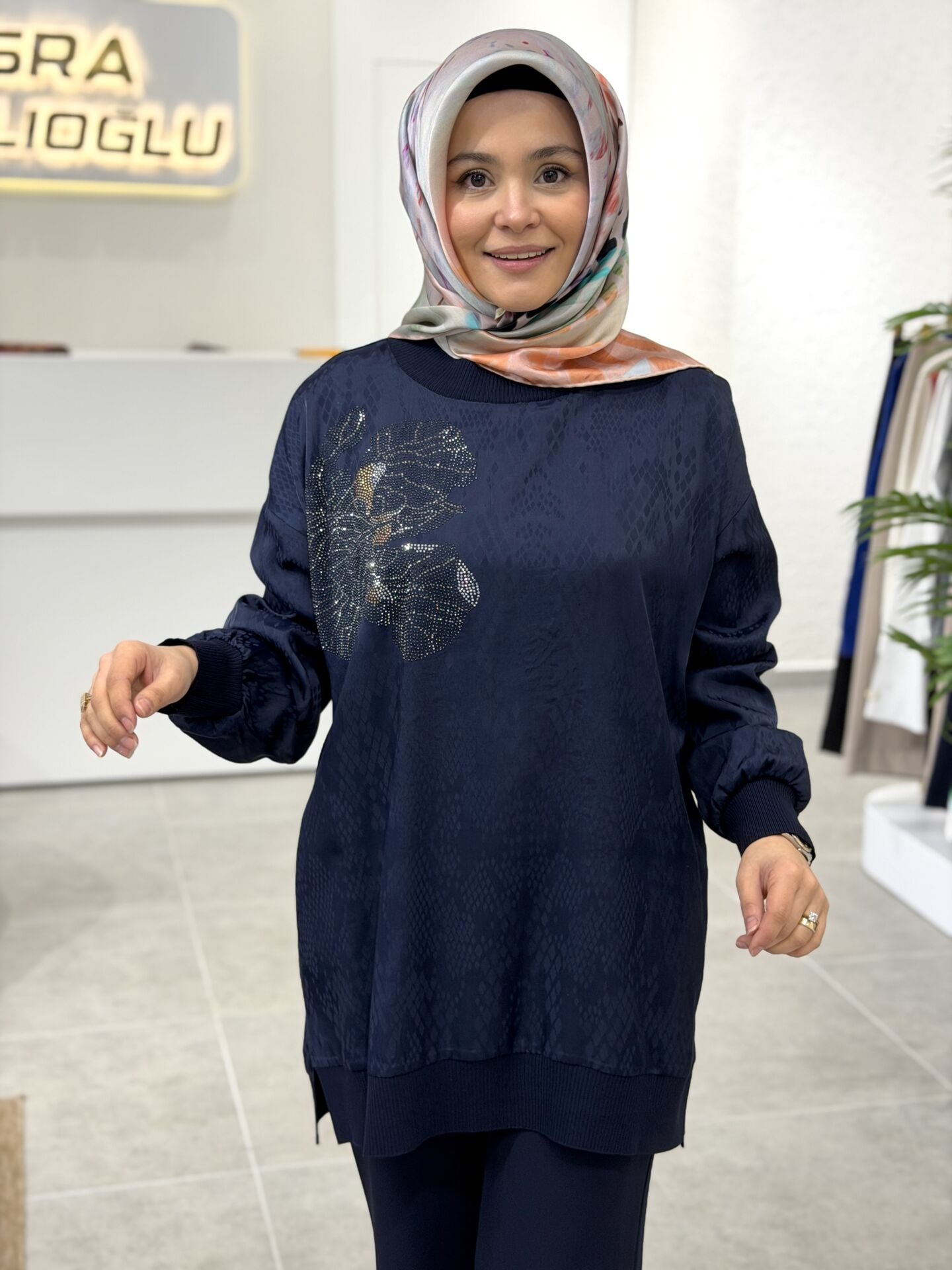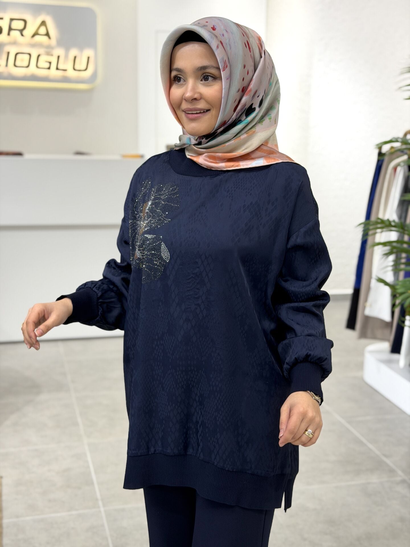 RİBANA DETAYLI TAŞ AKSESUARLI TUNİK BLUZ