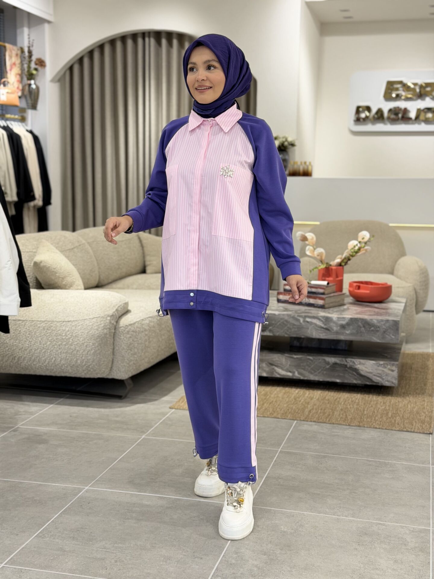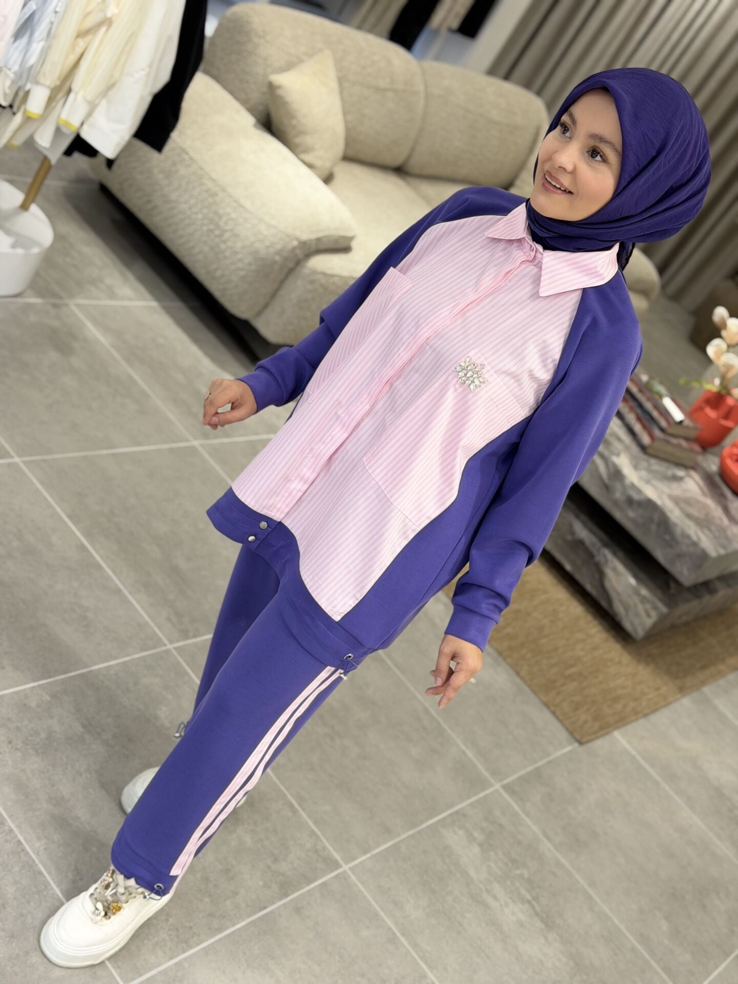 TIĞ TRİKO SCUBA GÖMLEK TASARIMLI TAKIM MOR