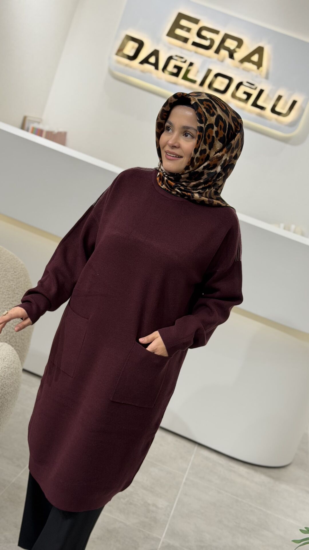 TIĞ TRİKO SIFIR YAKA CEPLİ TRİKO TUNİK BORDO