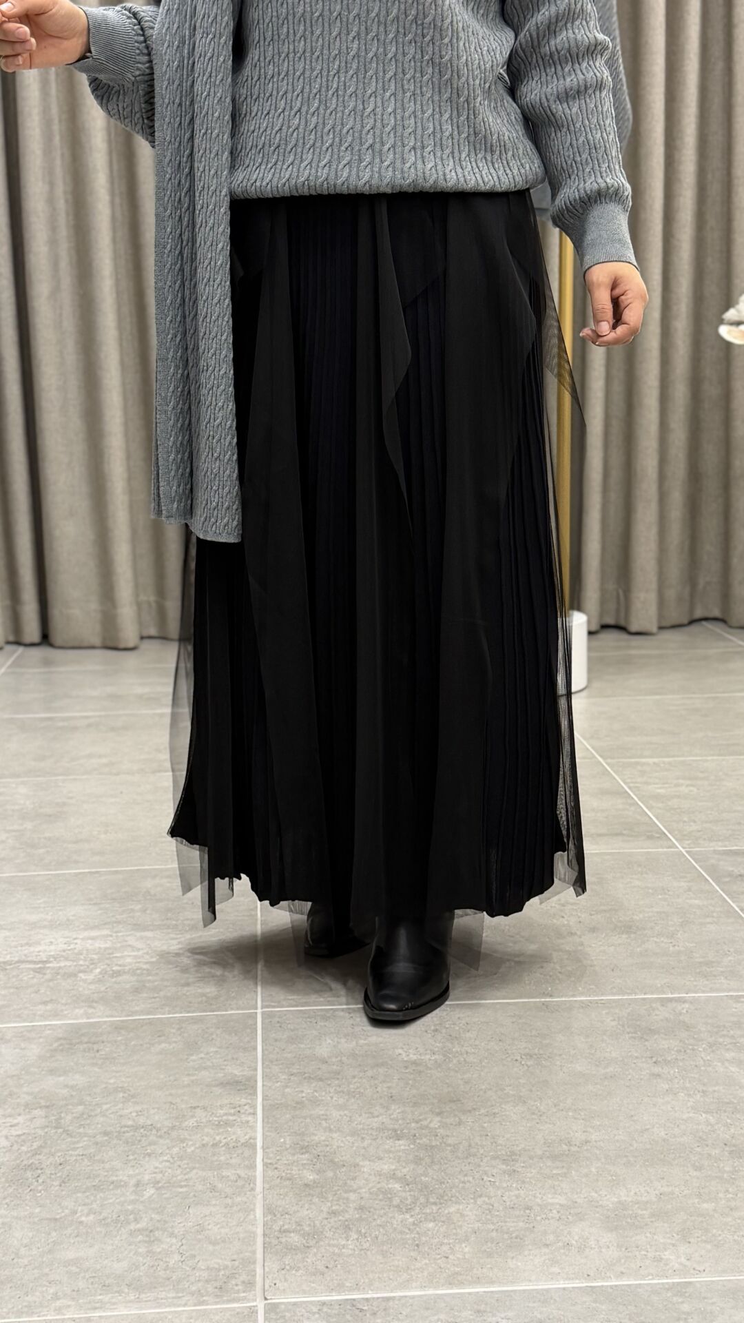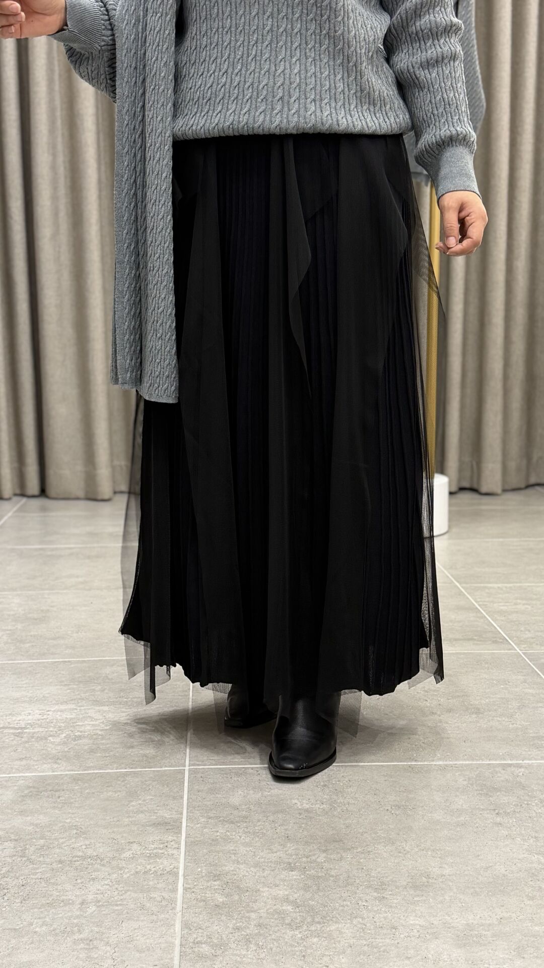 TIĞ TRİKO TÜL DETAYLI TRİKO ETEK SİYAH