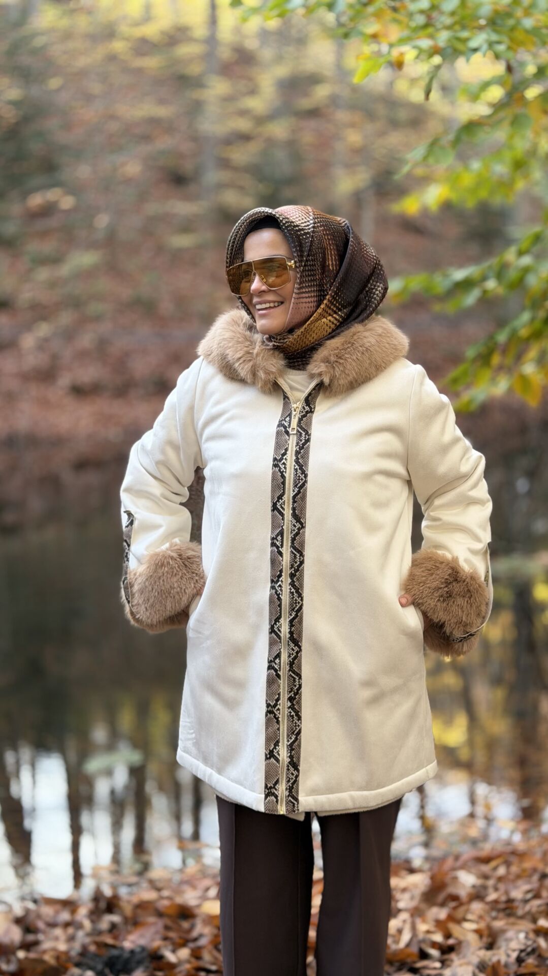 TIĞ TRİKO YILAN DERİSİ GARNİLİ DUBLE SÜET KÜRK KABAN