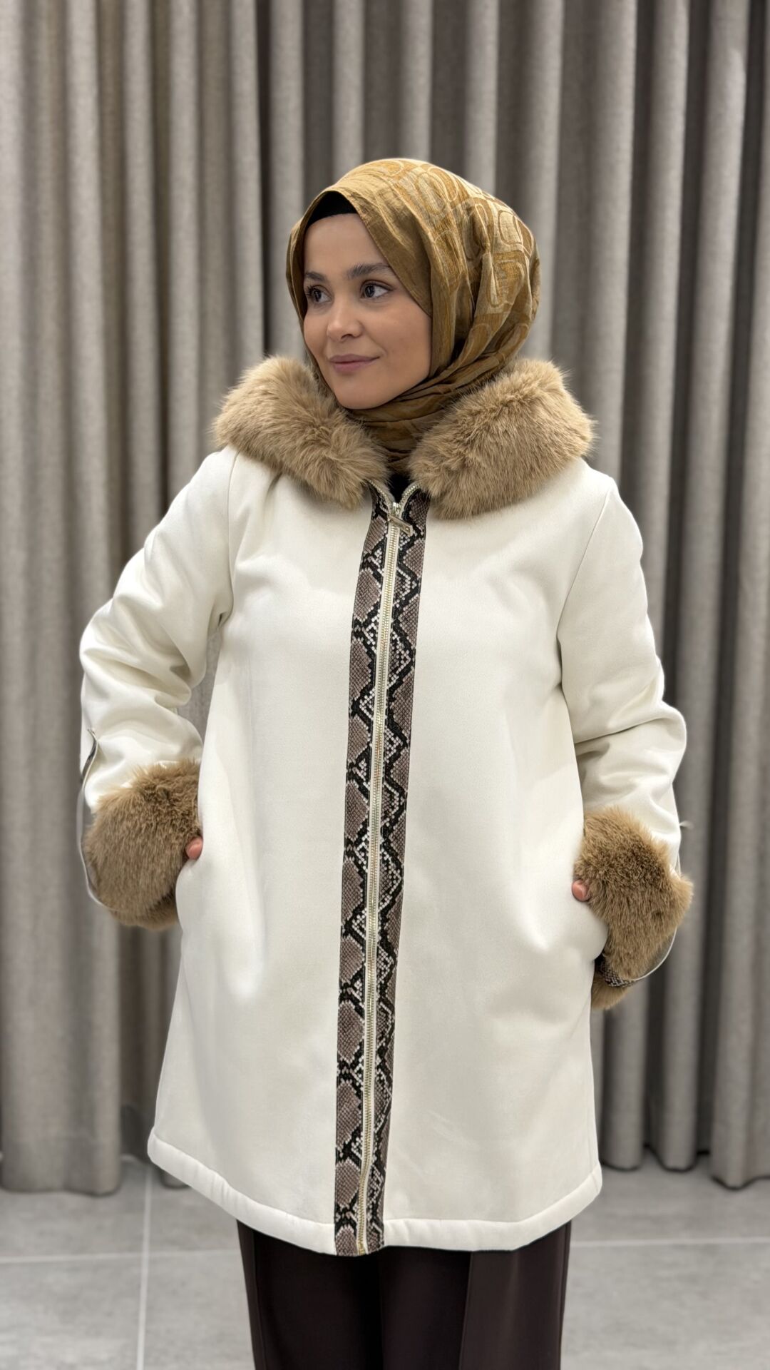 İTHAL SÜET YILAN DERİLİ GARNİLİ KÜRK KABAN