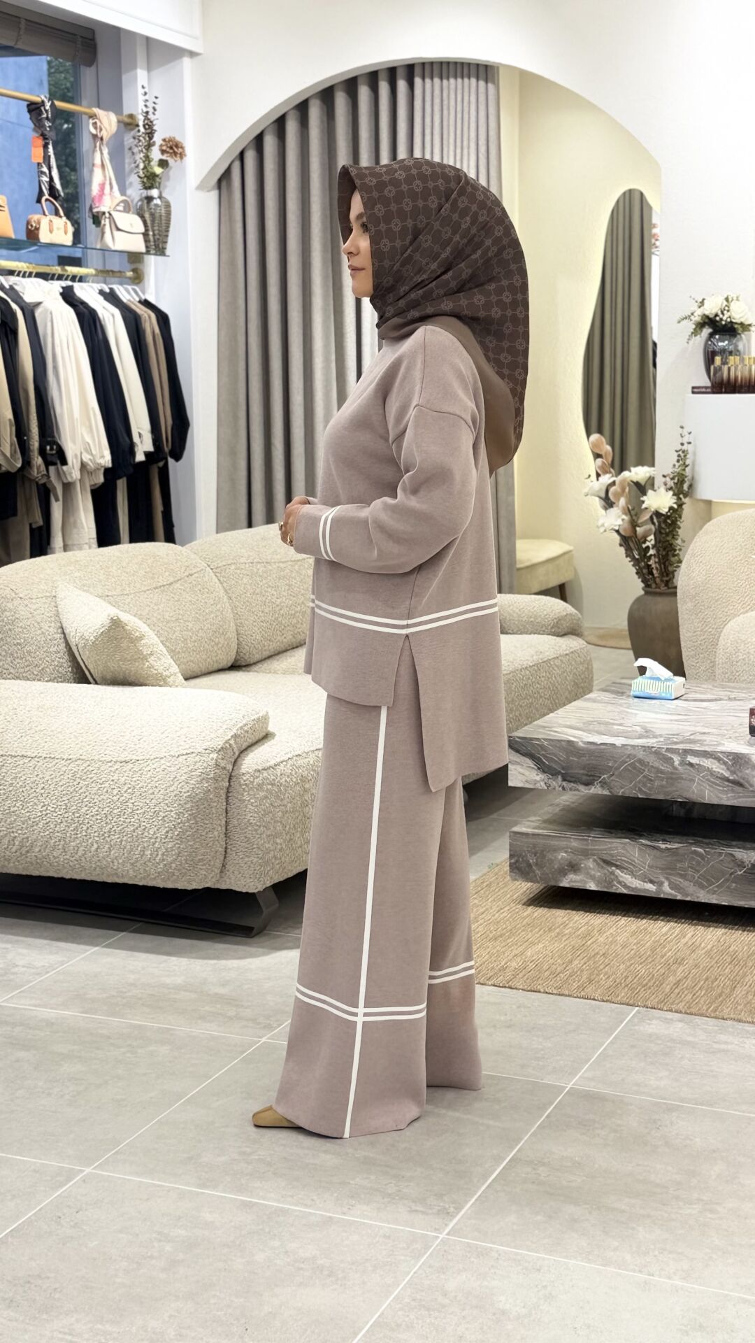 YAQA ÇELİK ÖRME TRİKO PANTOLONLU TAKIM BEJ