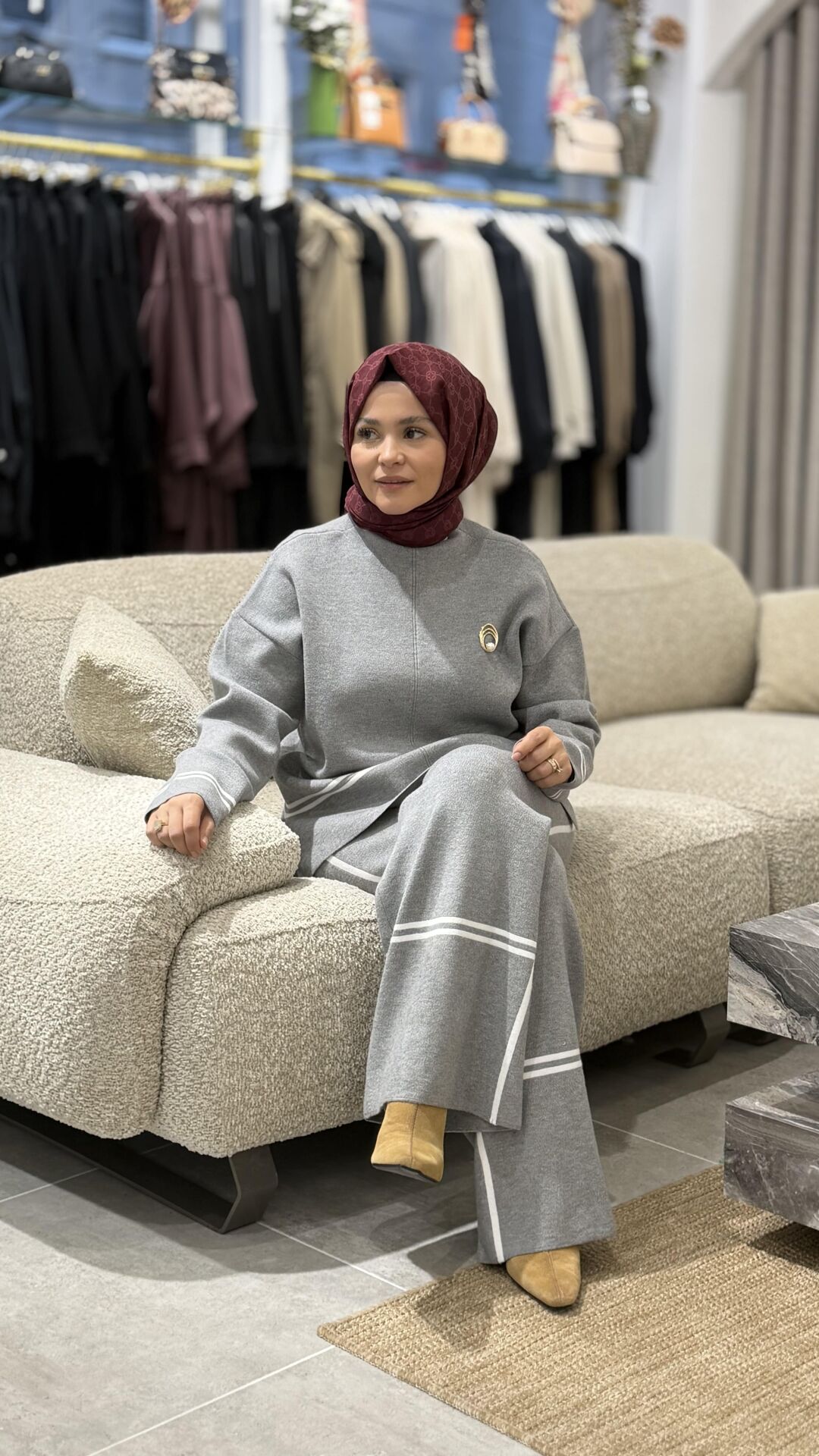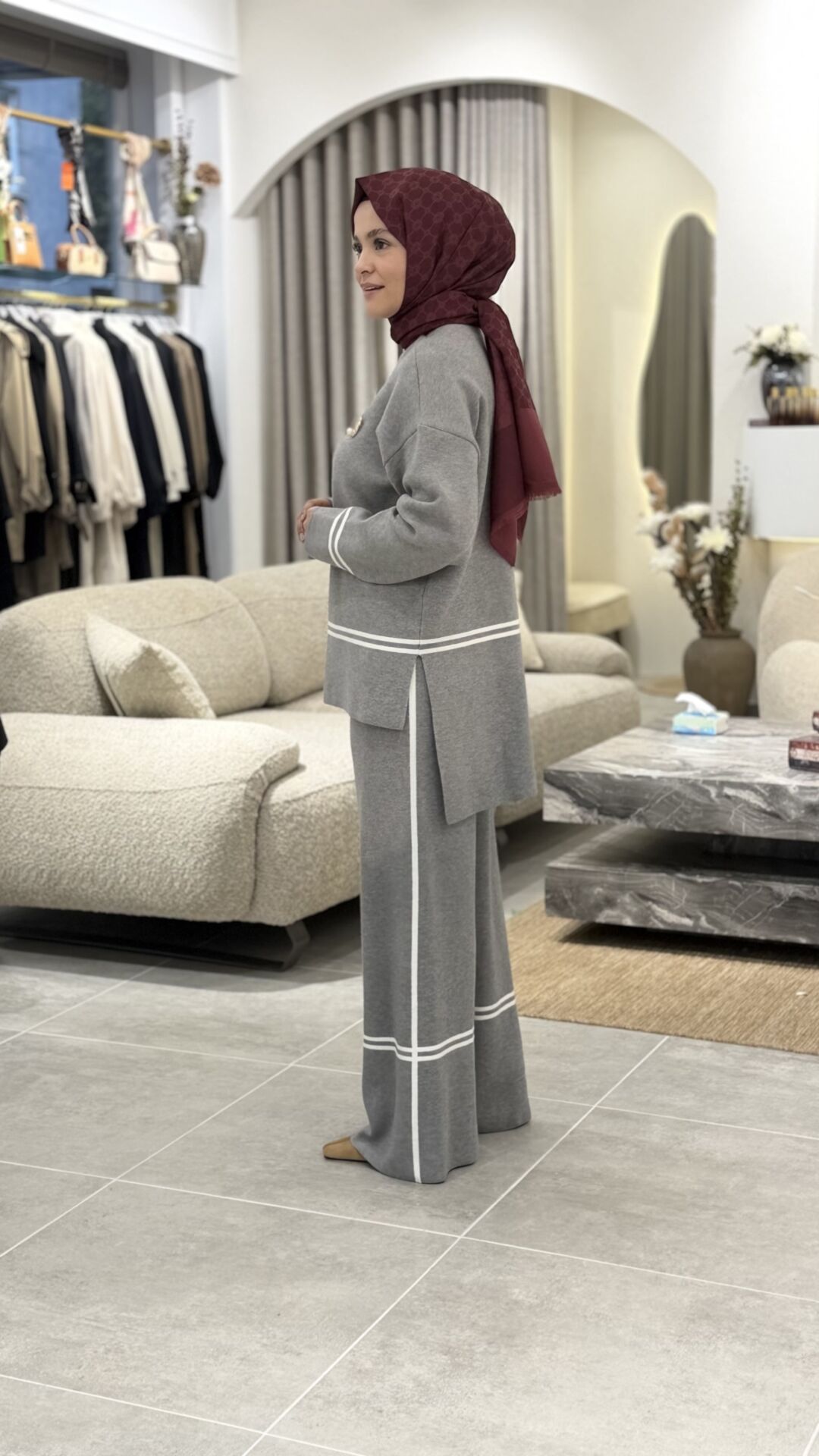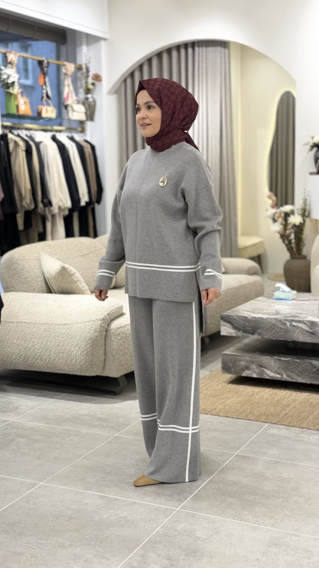 YAQA ÇELİK ÖRME TRİKO PANTOLONLU TAKIM GRİ