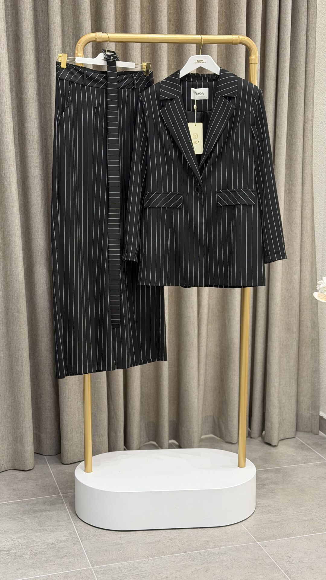 YAQA ÇİZGİLİ KUMAŞ PANTOLON SİYAH