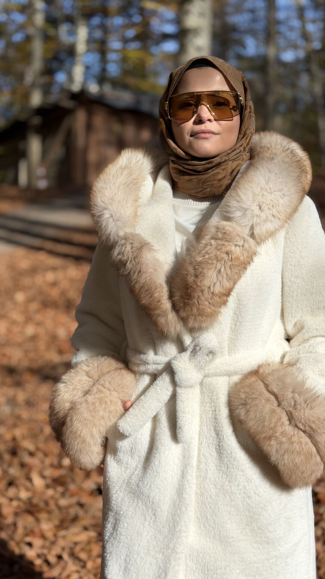YAQA HAKİKİ TİLKİ KÜRK KABAN EKRU